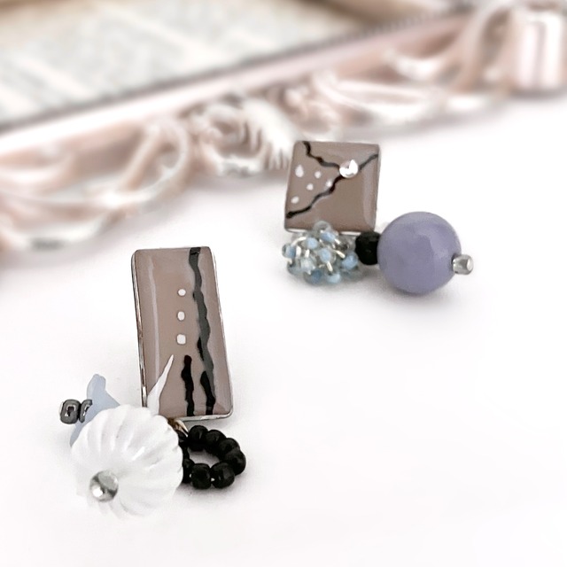 くすみニュアンス×チェック 秋イヤリング/ピアス
