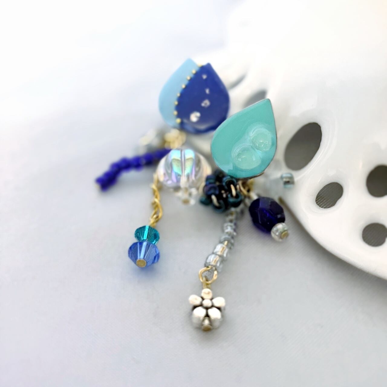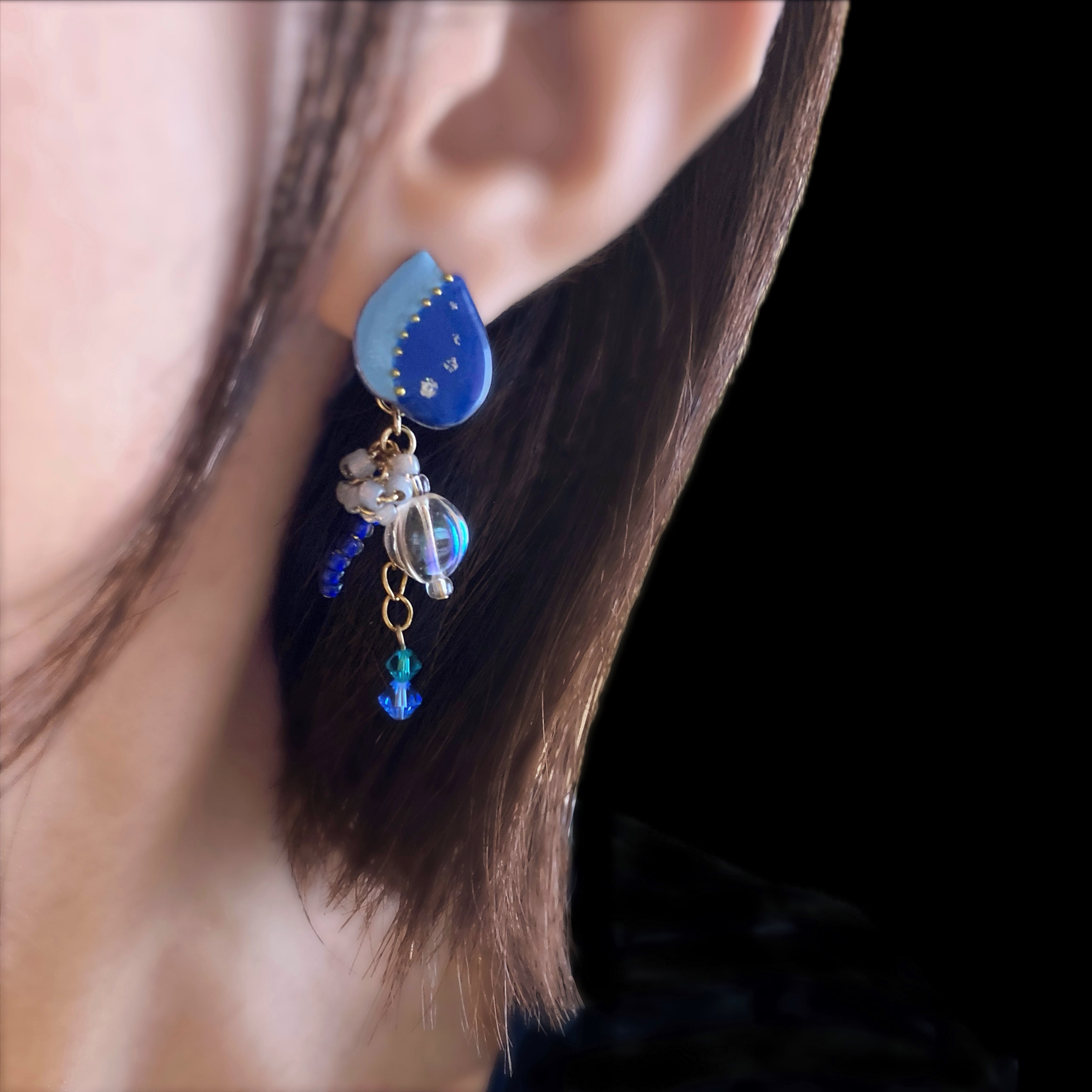 utane+の耳飾りは、揺れるビーズもポイントになっています。