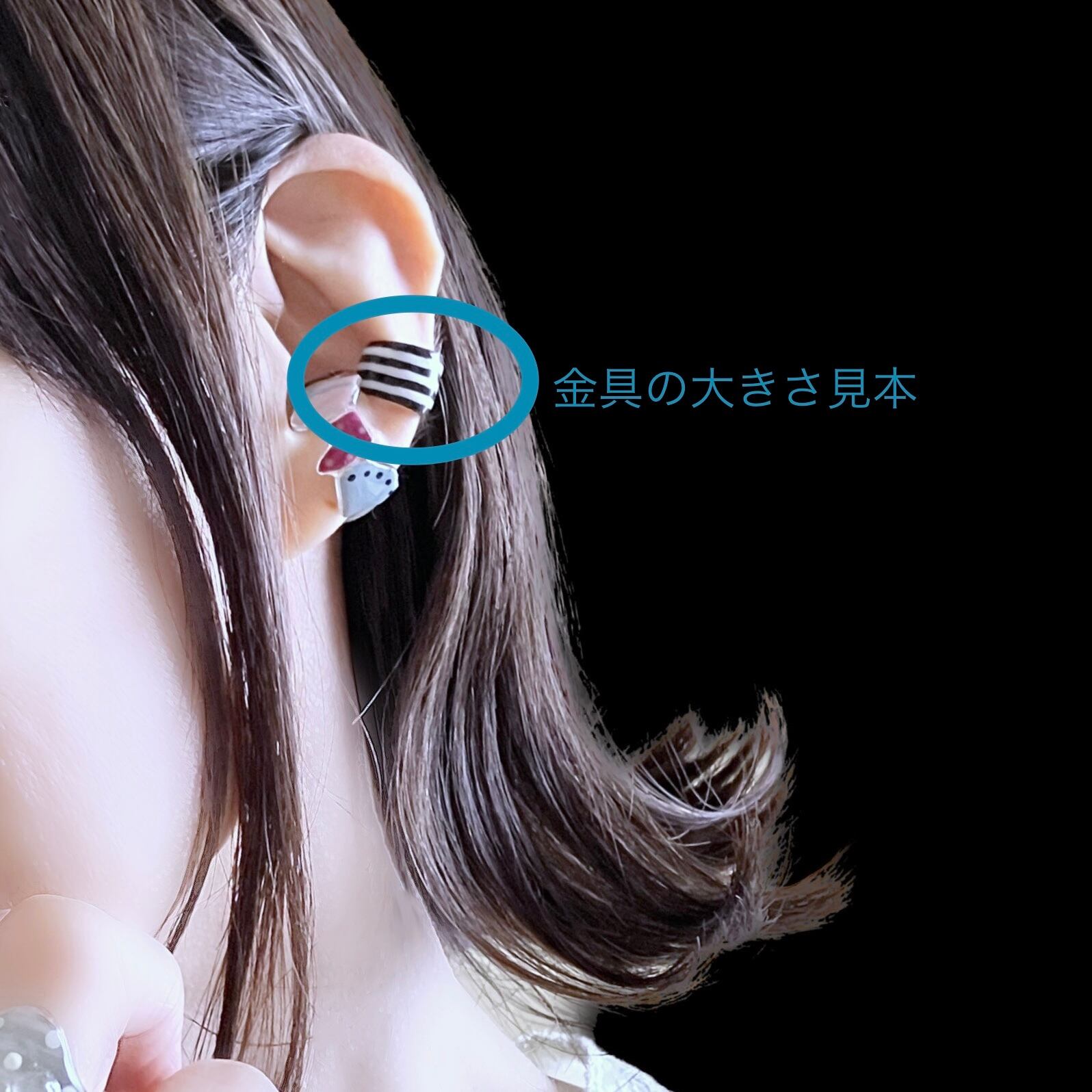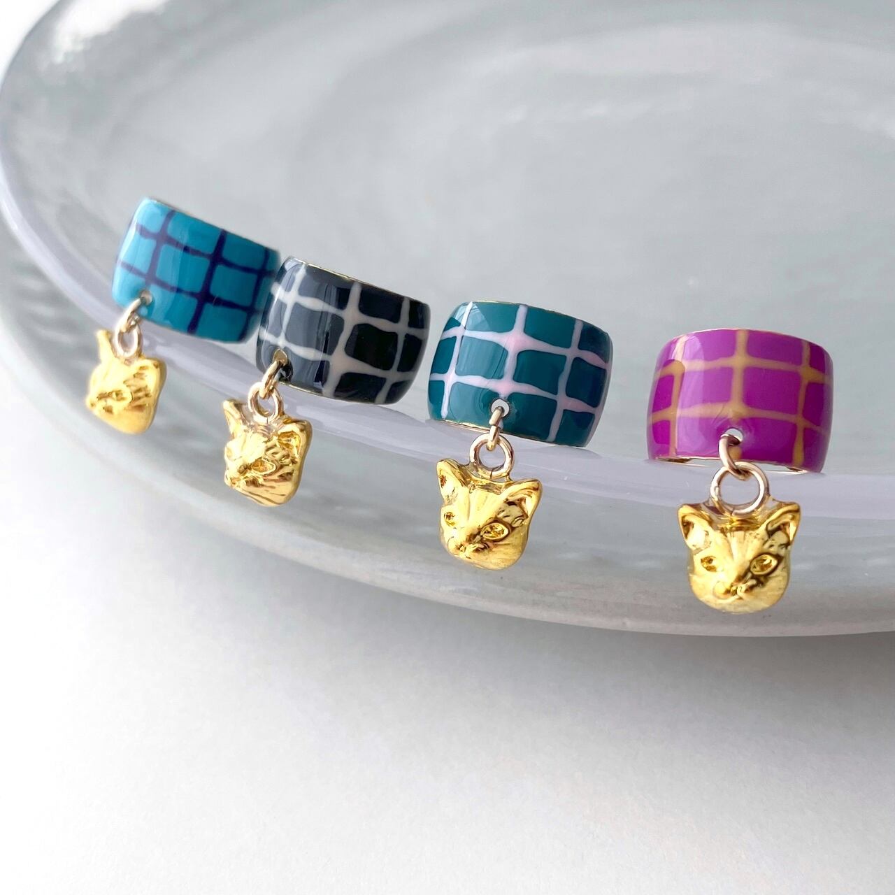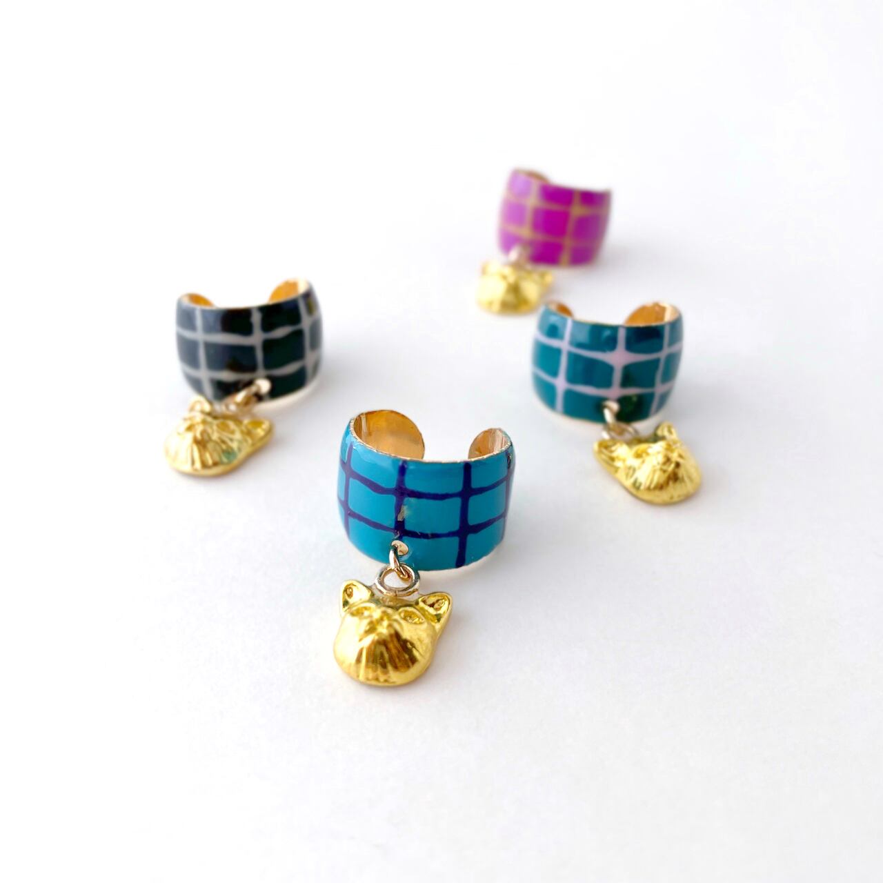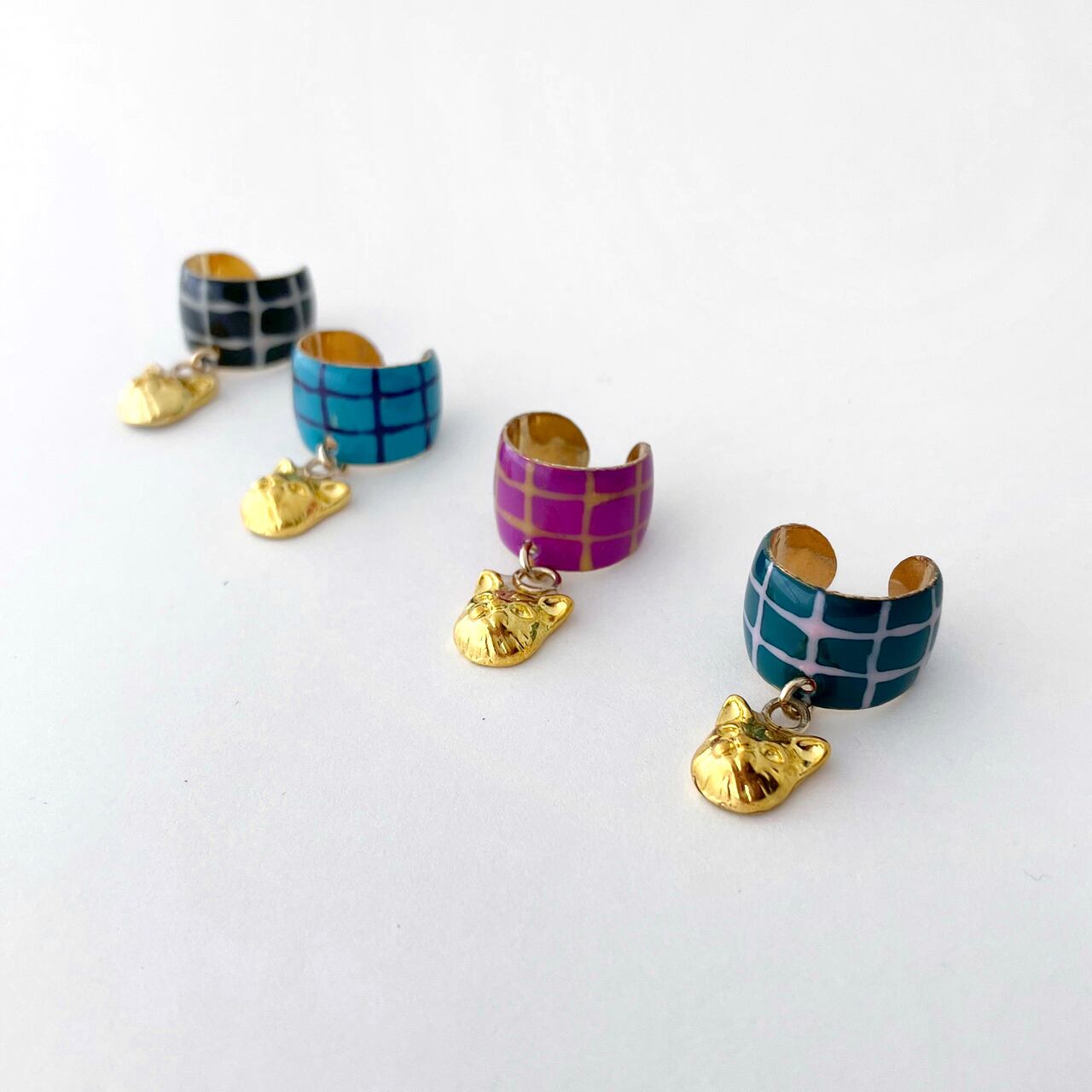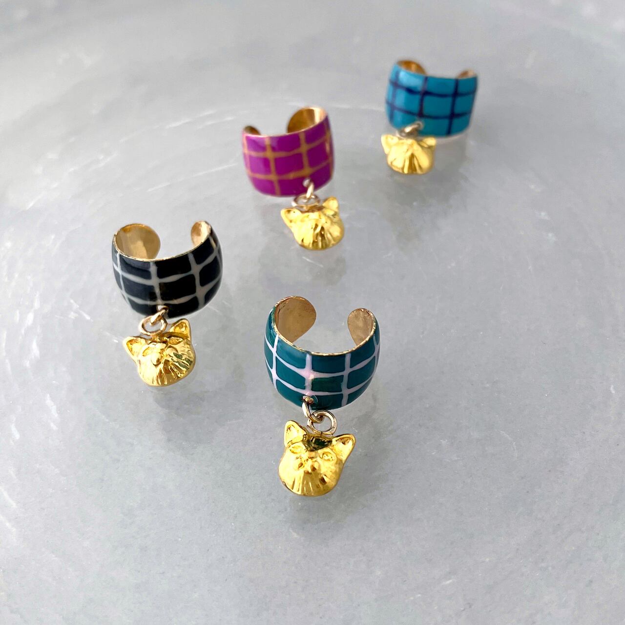 立体フェイスの猫チャームを揺らしたイヤーカフです。