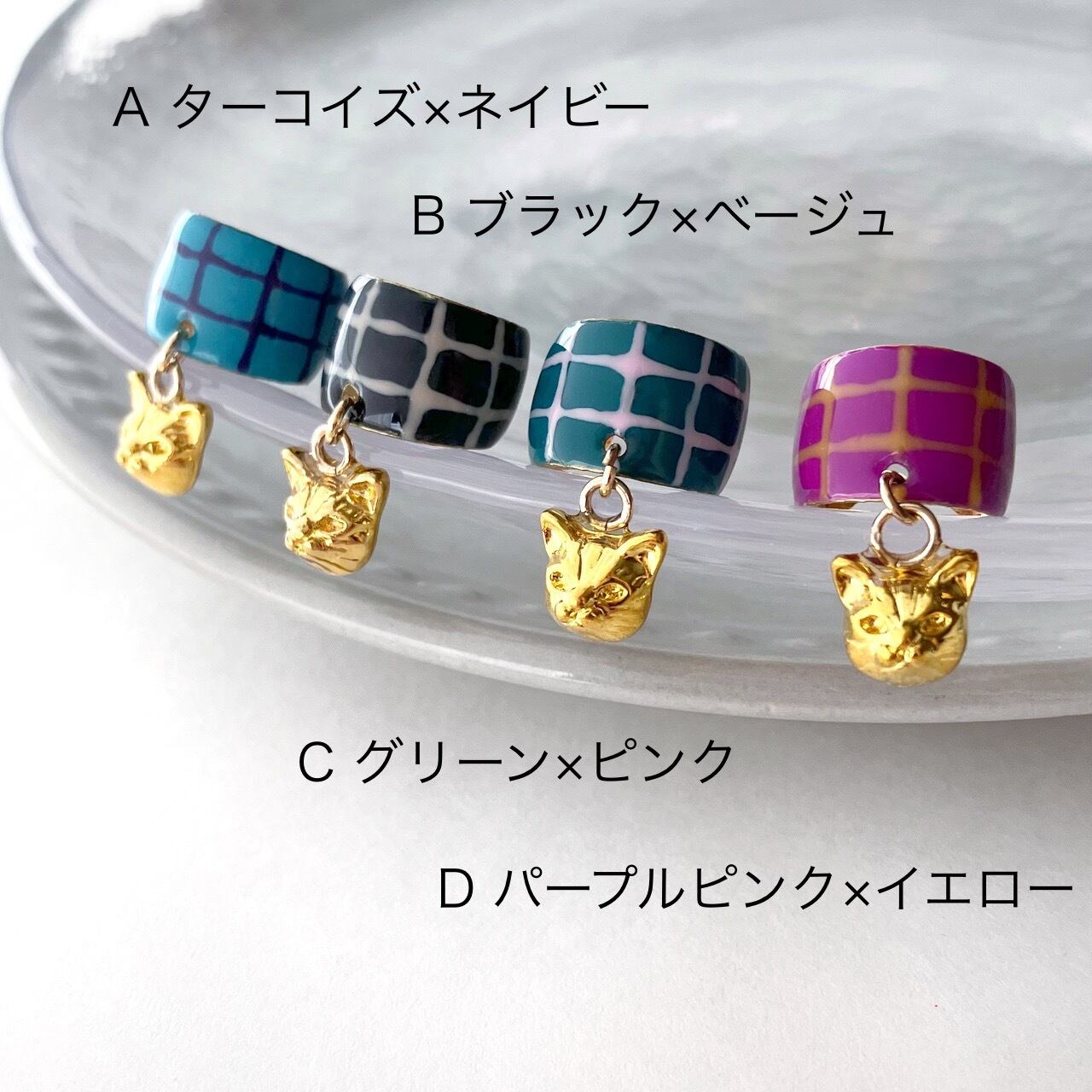 猫チャームの裏側はベースと同じカラーに着色しています。