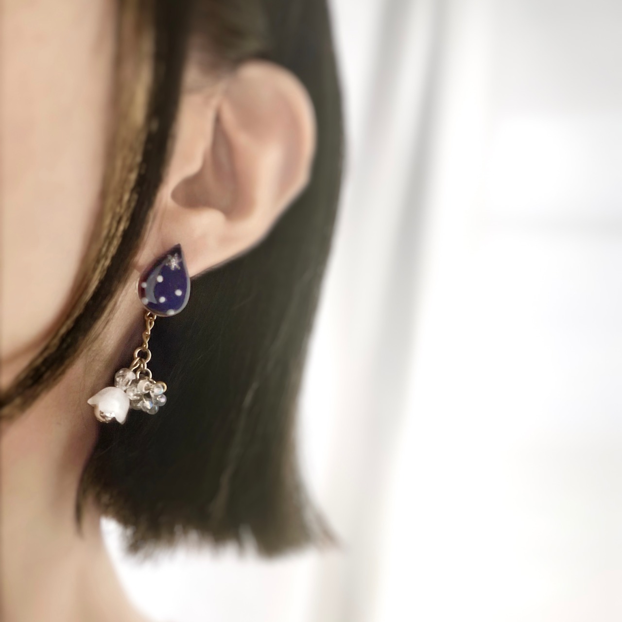 utane+の耳飾りは揺れるビーズもポイント。