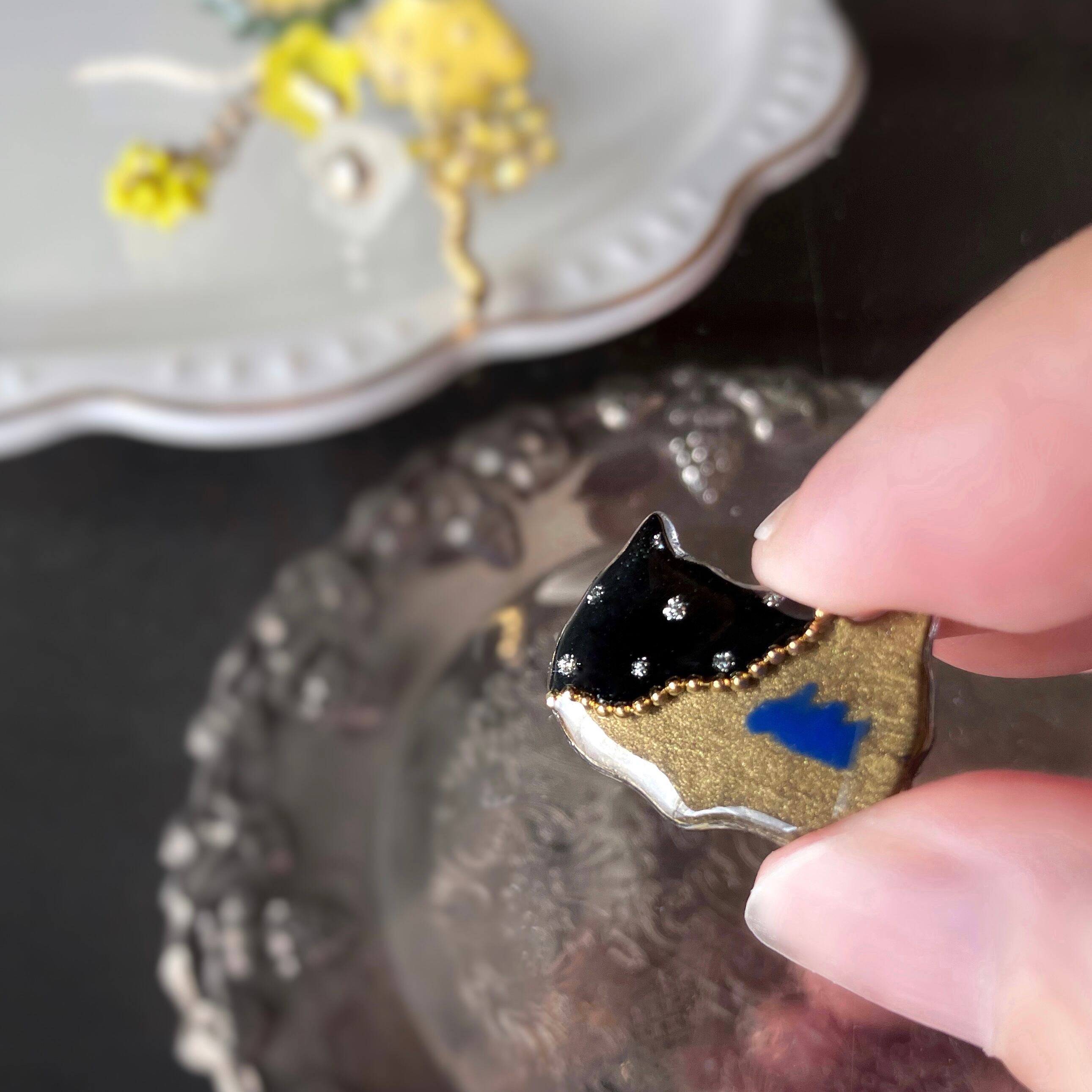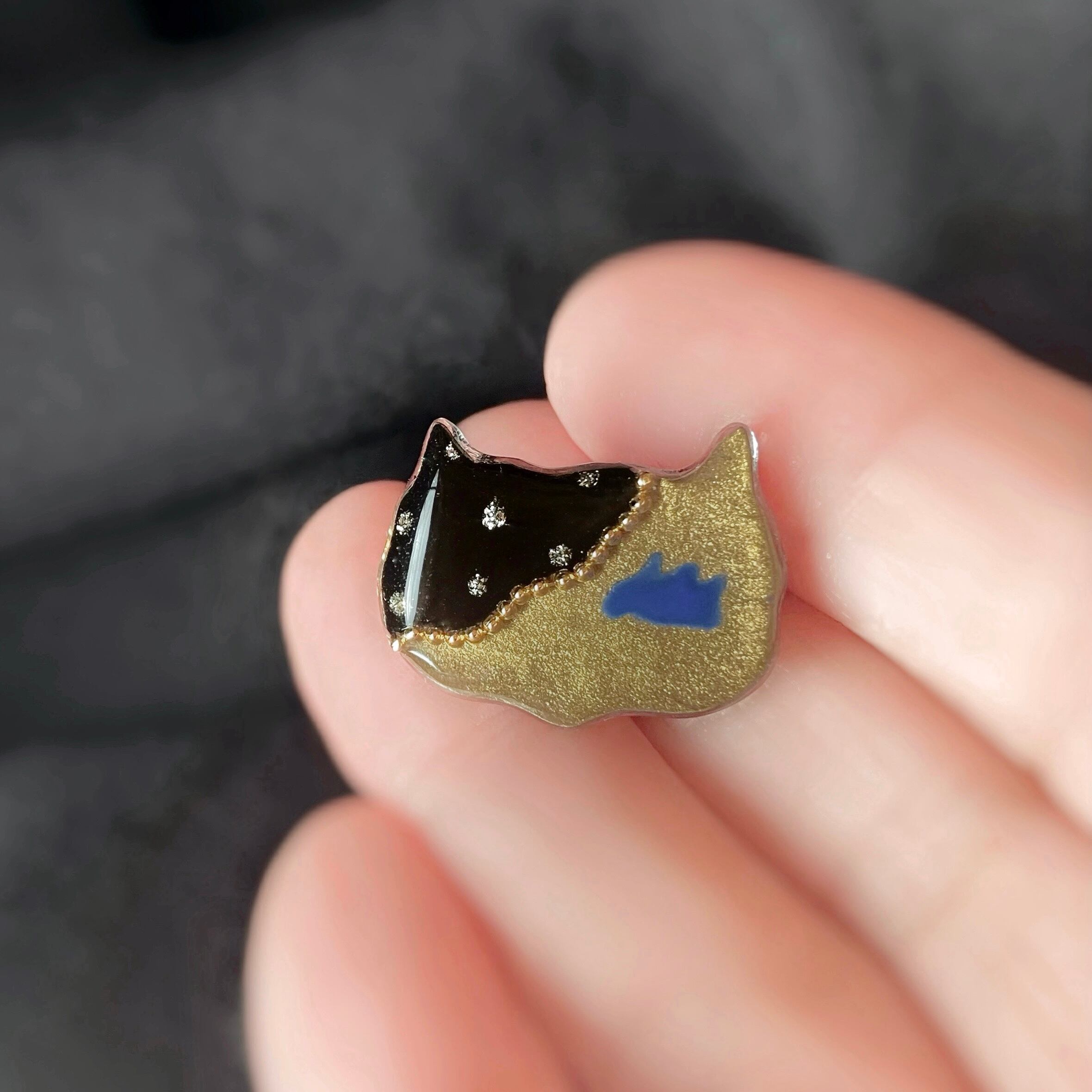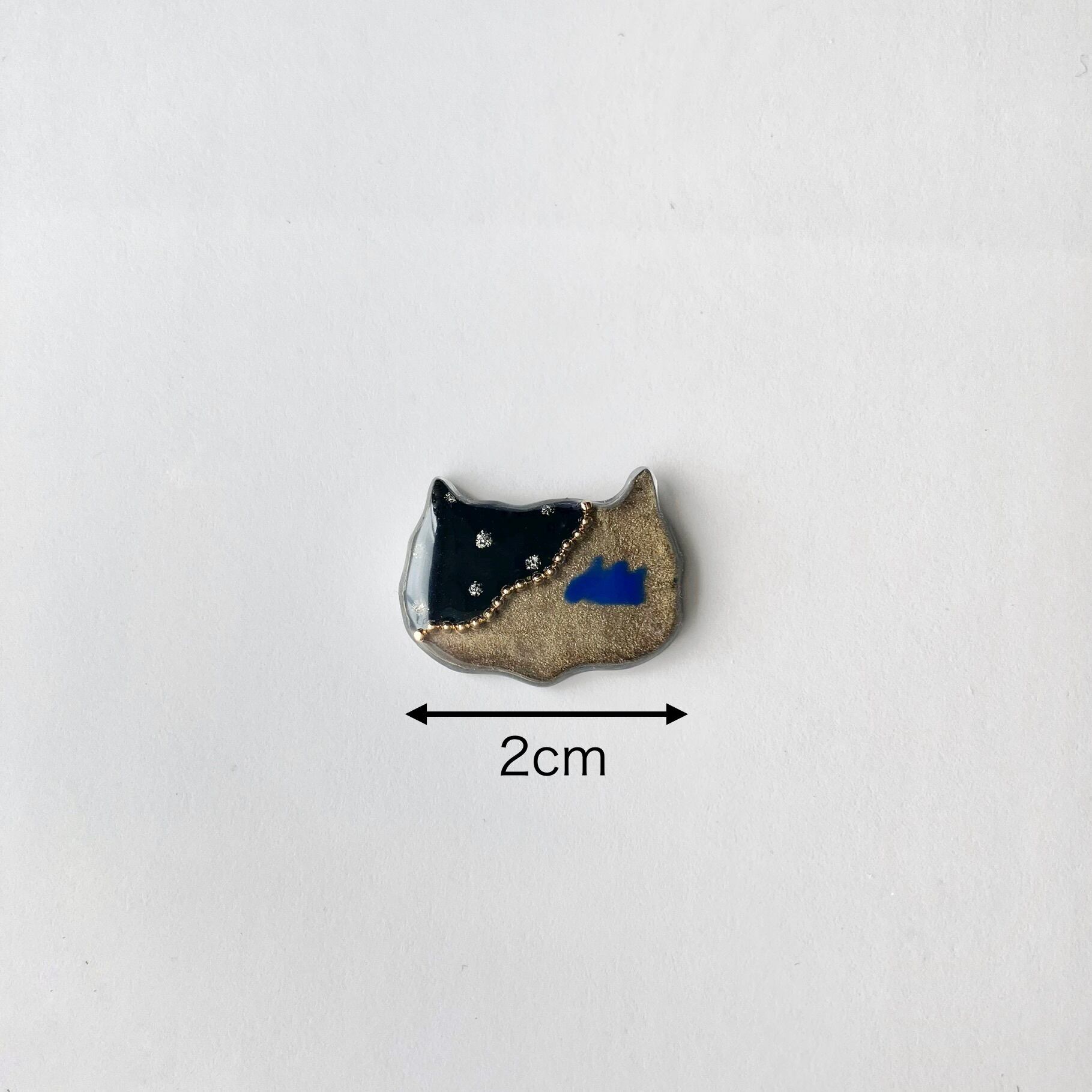 mini猫ブローチ ブルーアイ 黒×アンティークゴールド 2cm 青い目