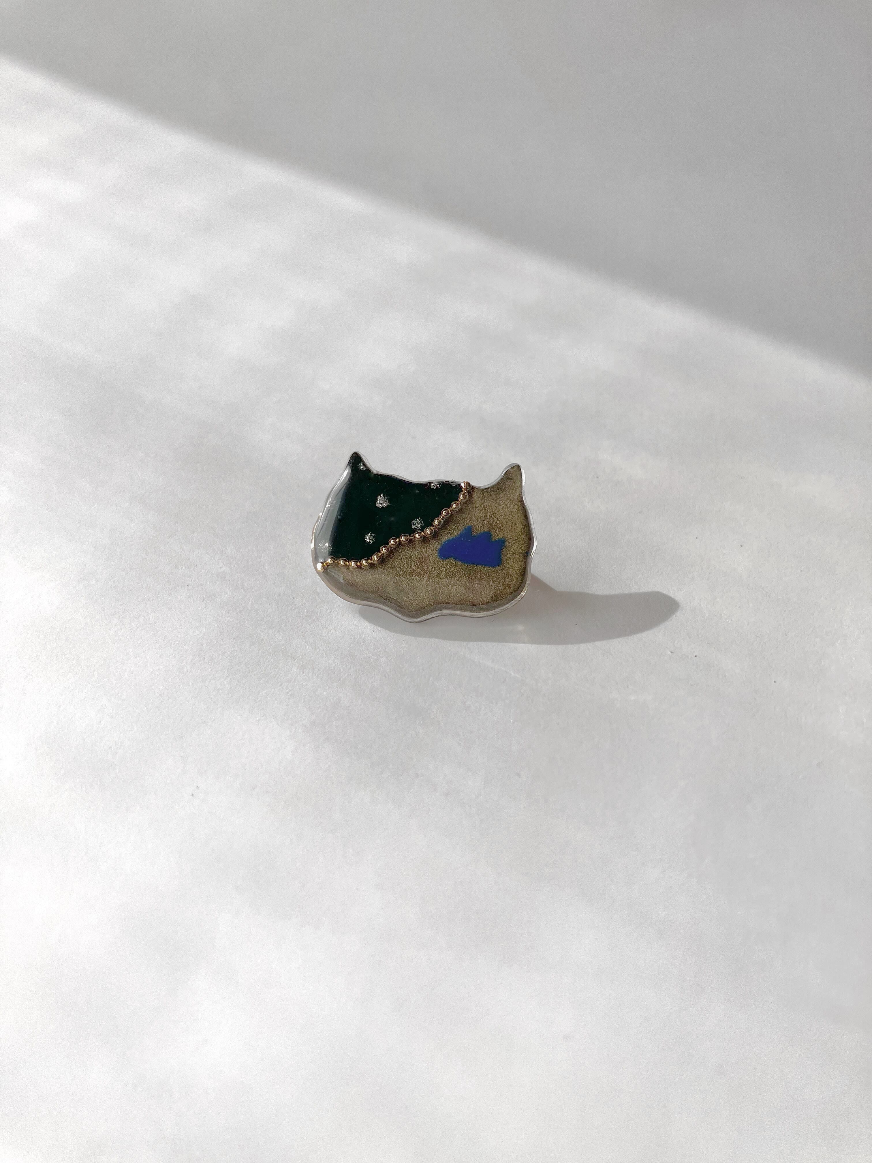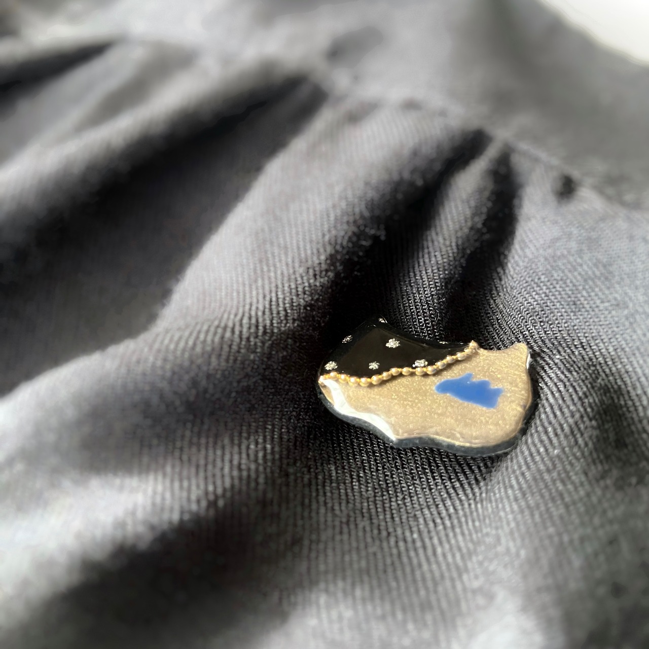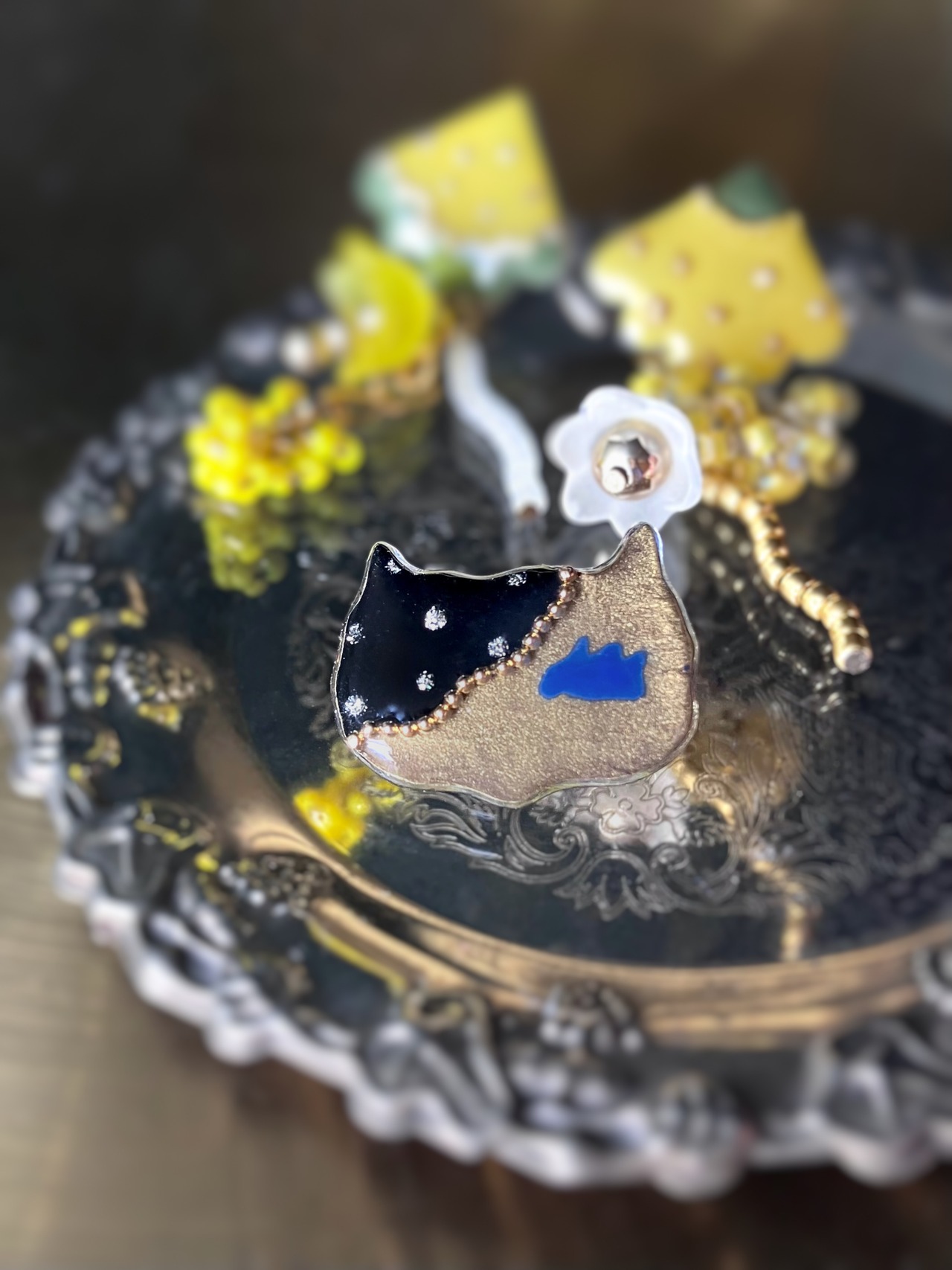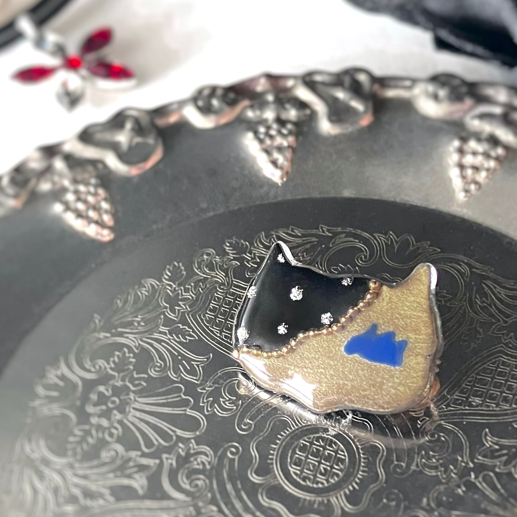 mini猫ブローチ ブルーアイ 黒×アンティークゴールド 2cm 青い目