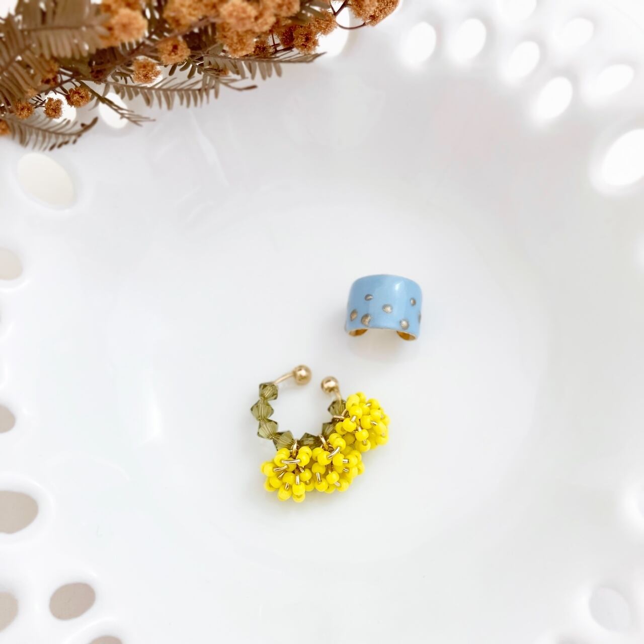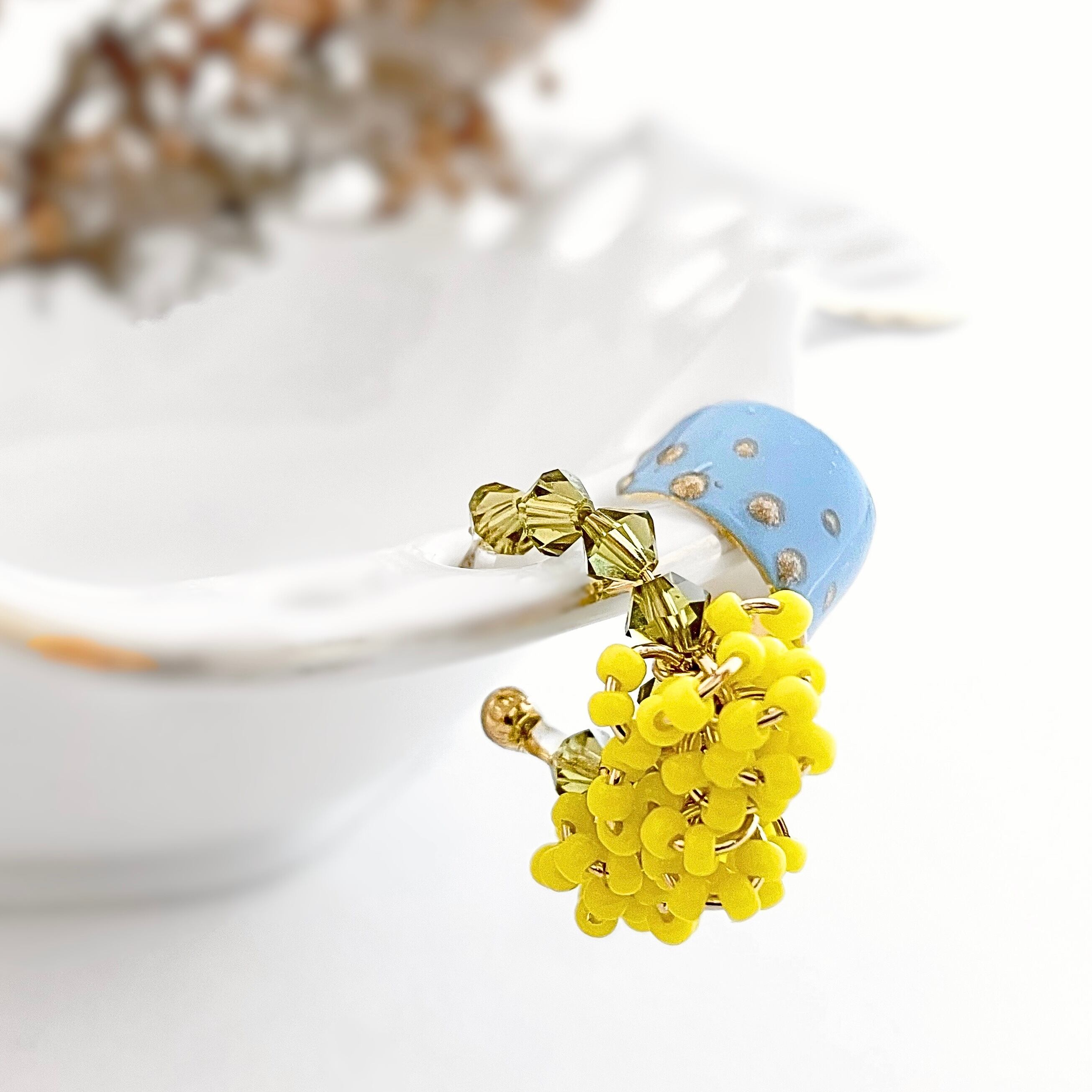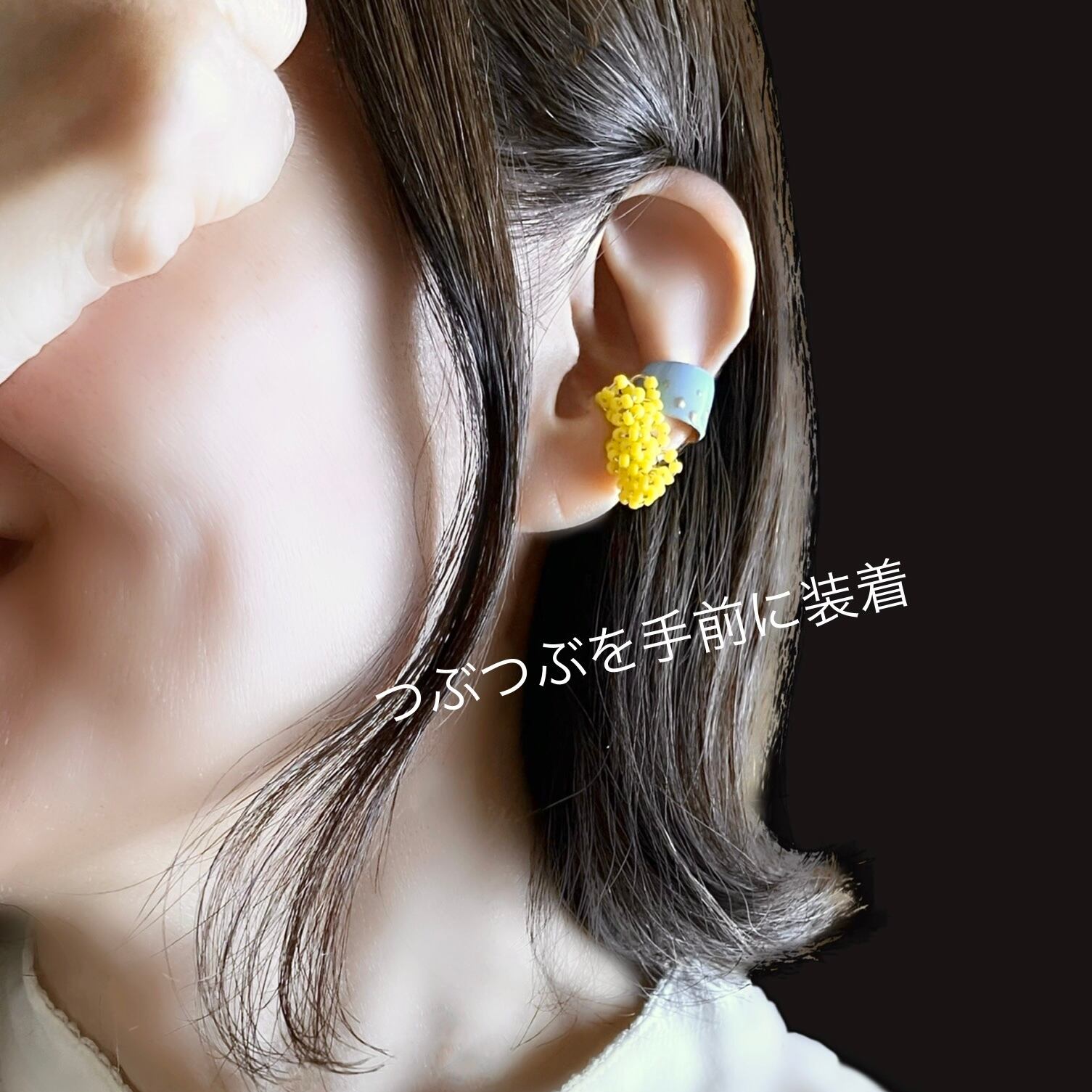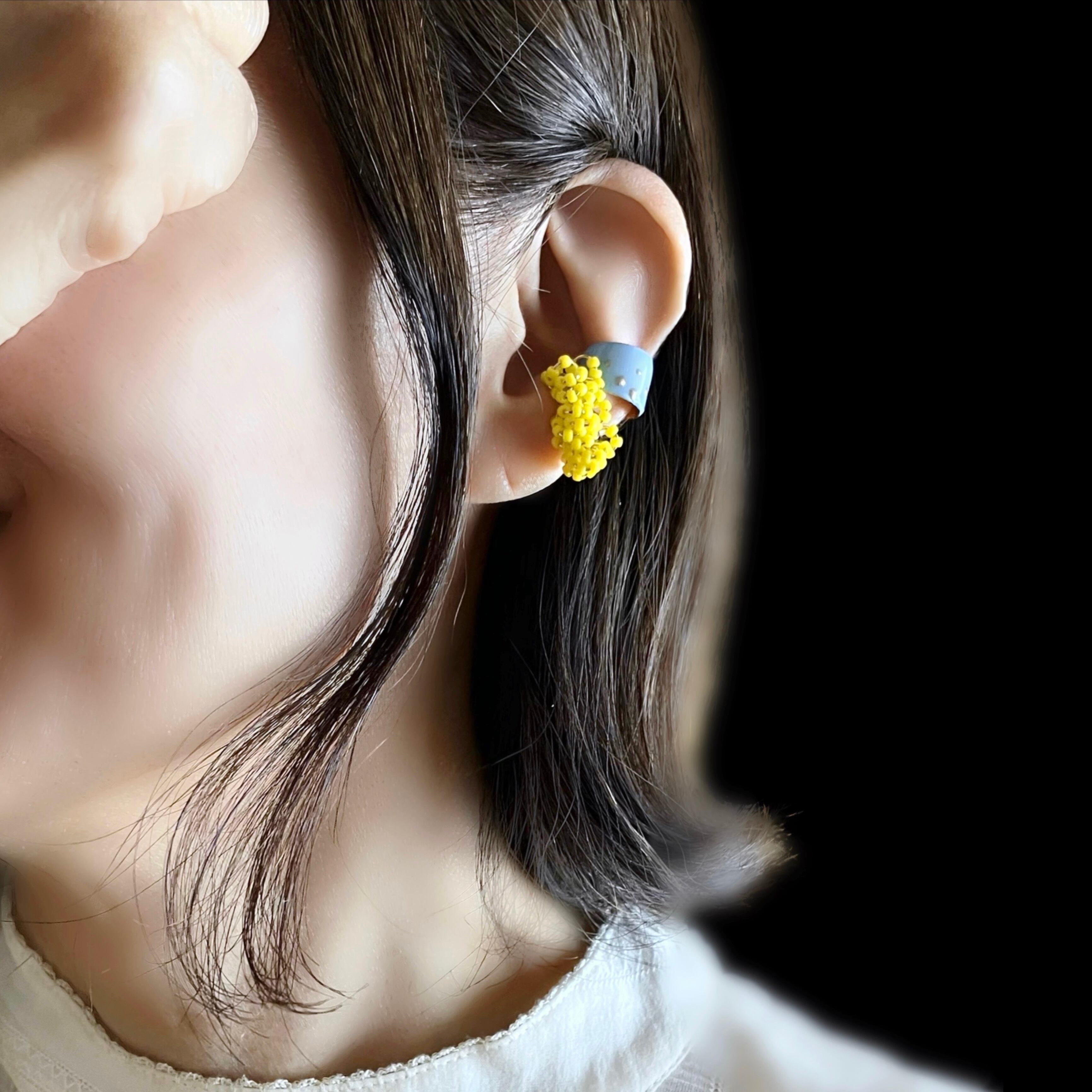 華やか イヤカフ 耳飾り デート お出掛け 大人可愛い おしゃれ 女子会 きれいめ 個性的 ギフト ラッピング 黄色 春 アクセサリー コーディネート コーデ アカシア
