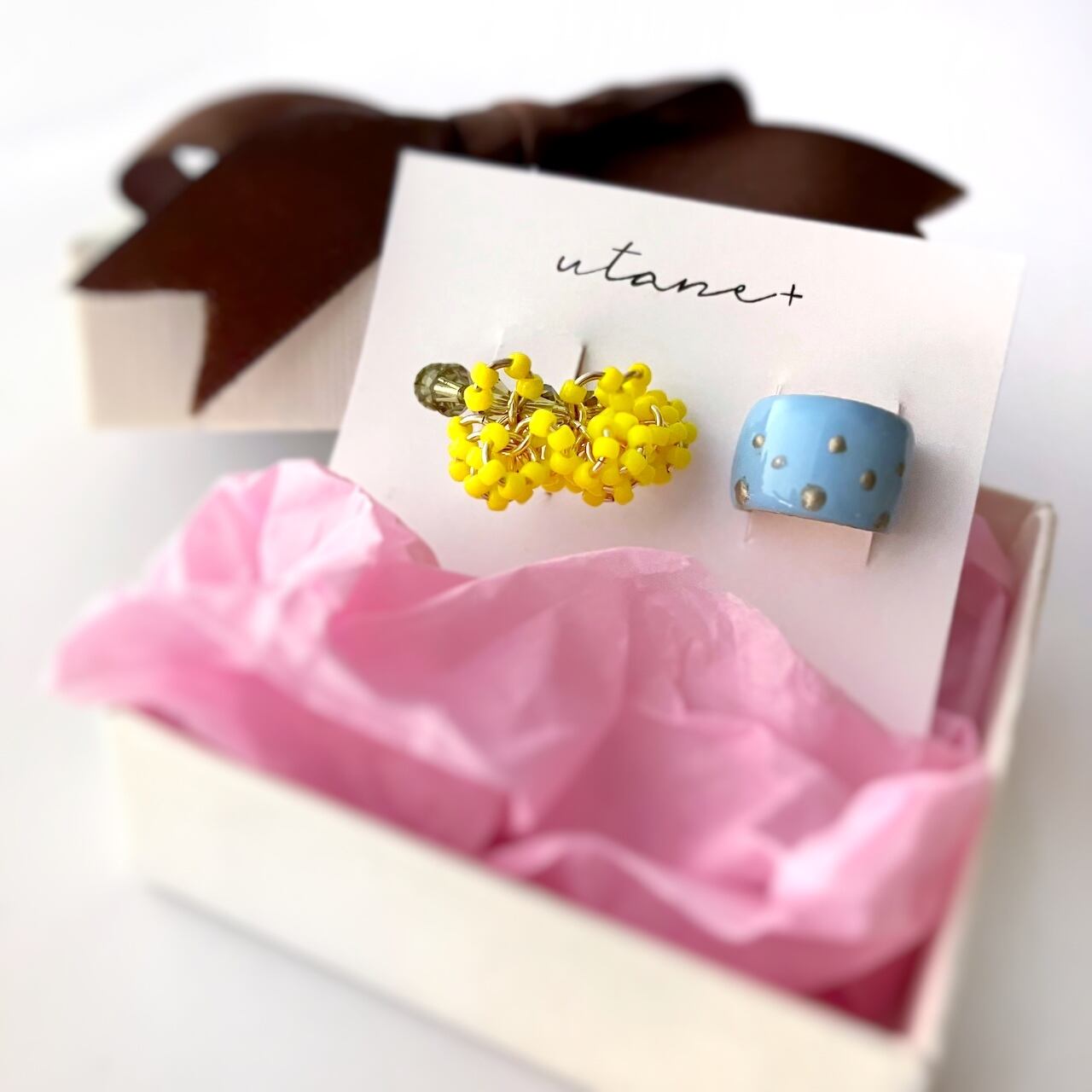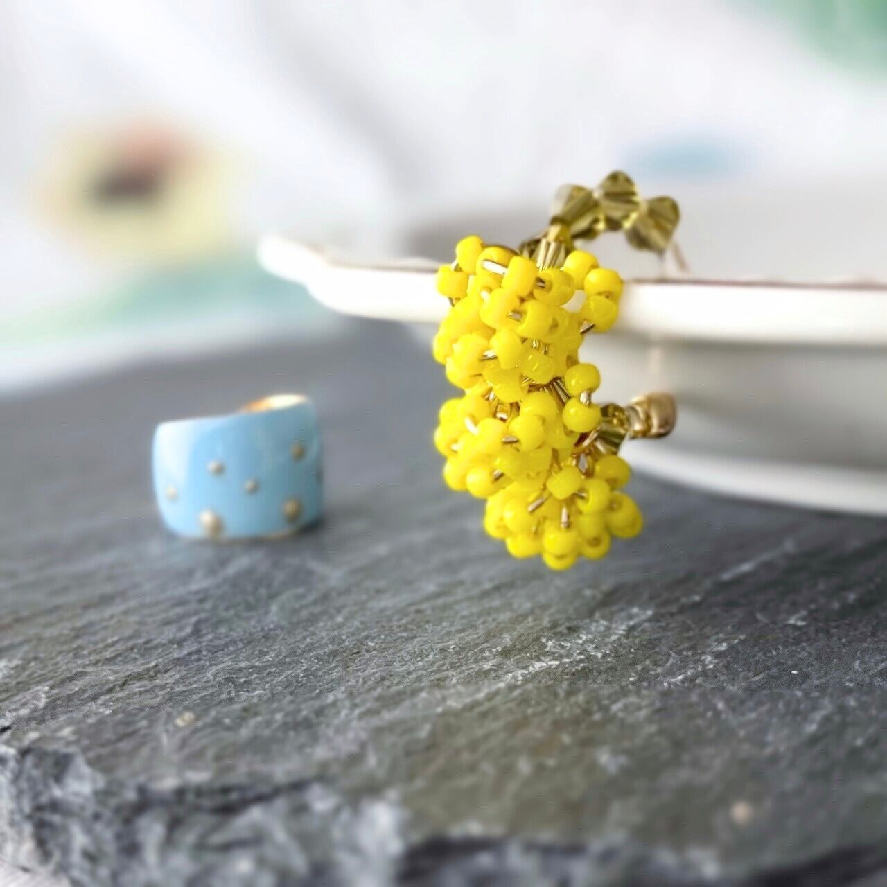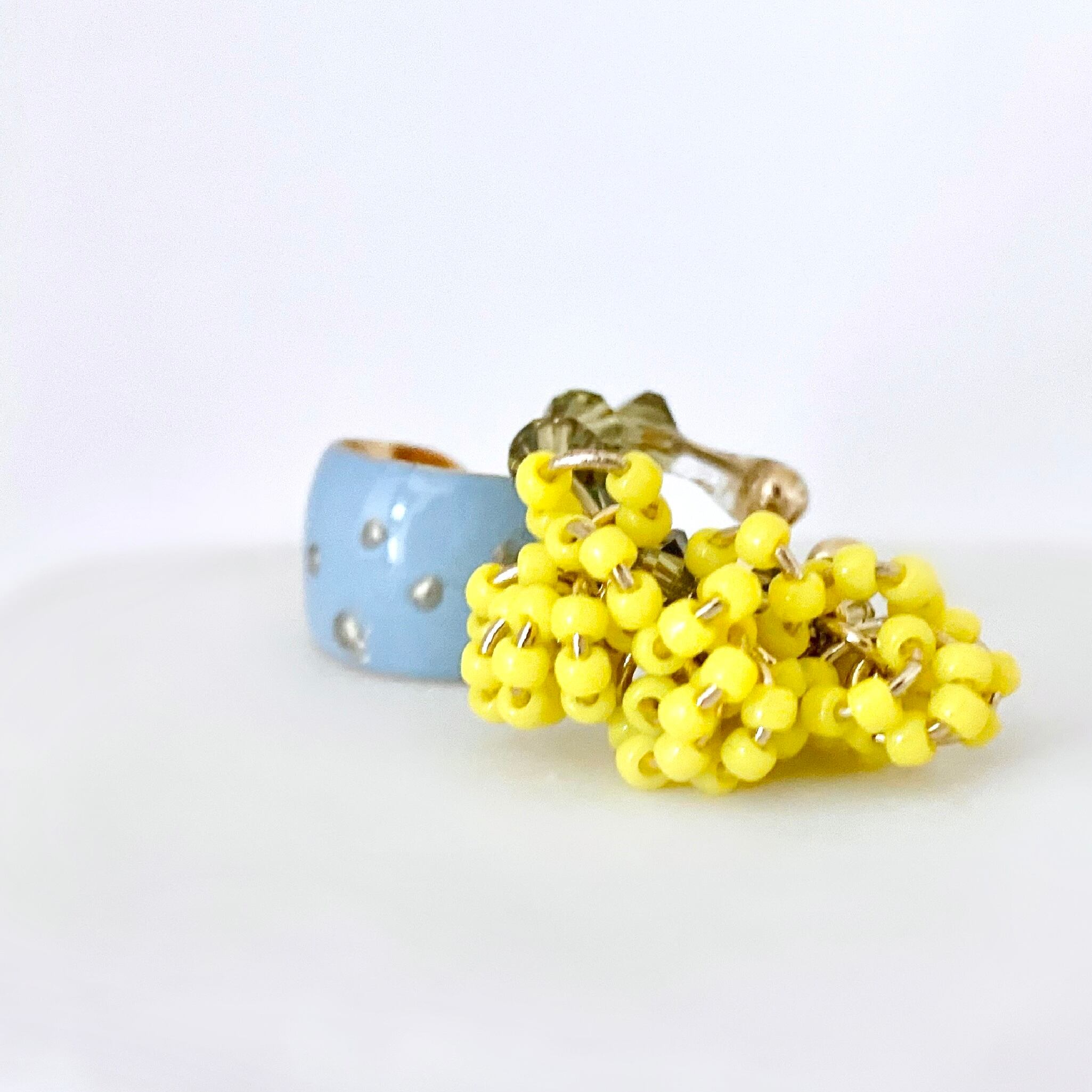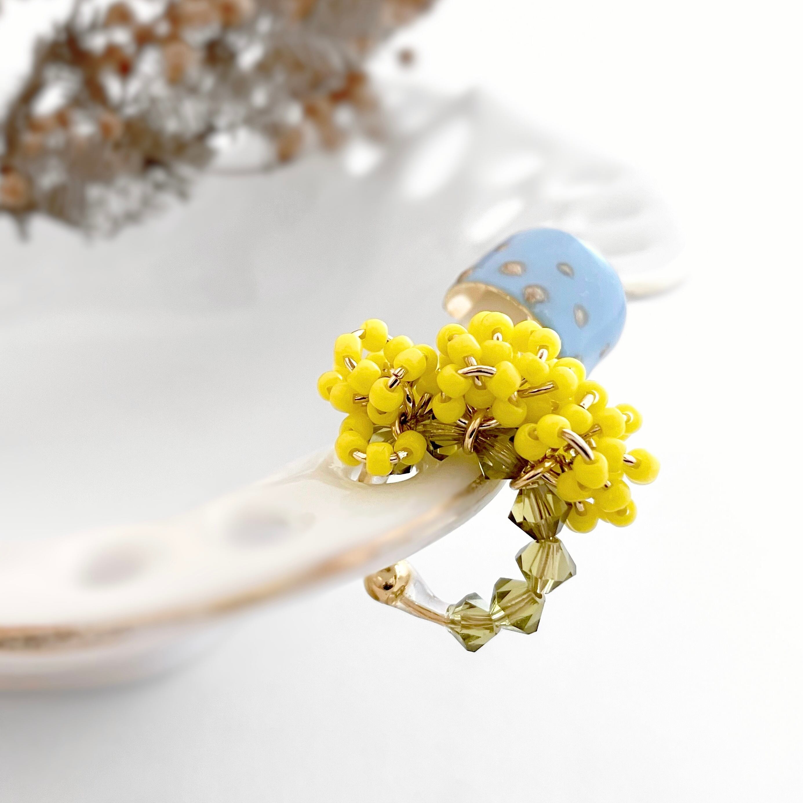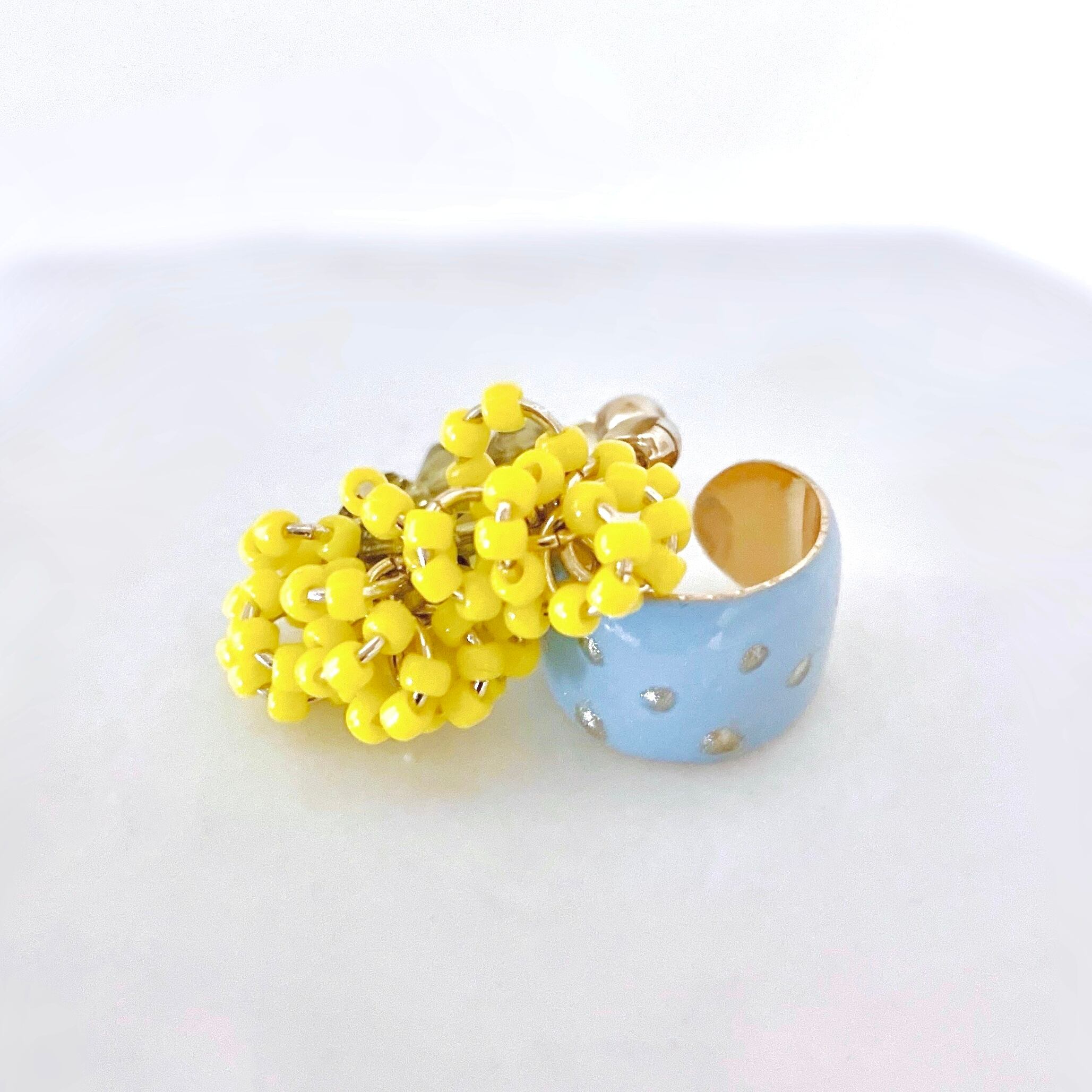 華やか イヤカフ 耳飾り デート お出掛け 大人可愛い おしゃれ 女子会 きれいめ 個性的 ギフト ラッピング 黄色 春 アクセサリー コーディネート コーデ アカシア