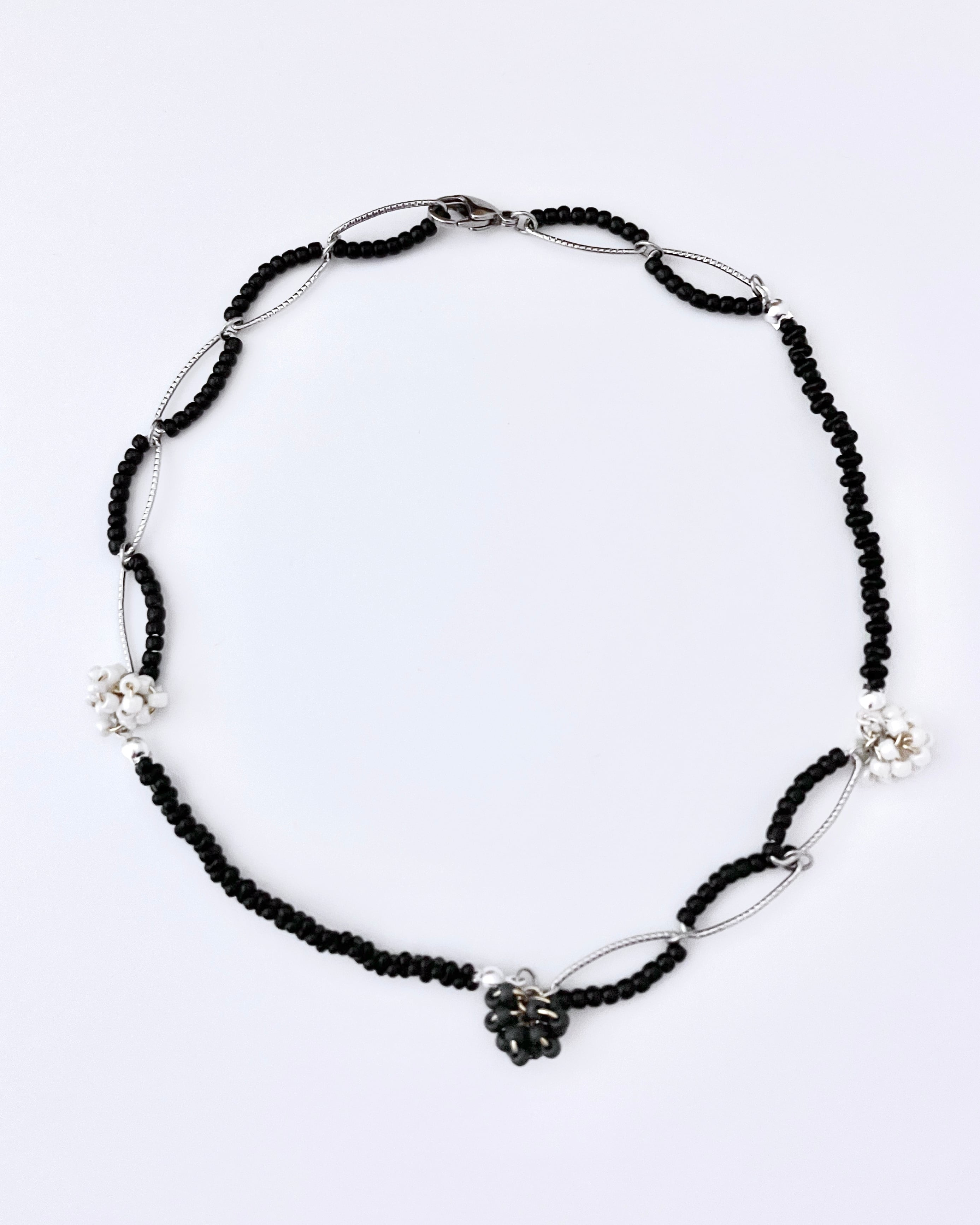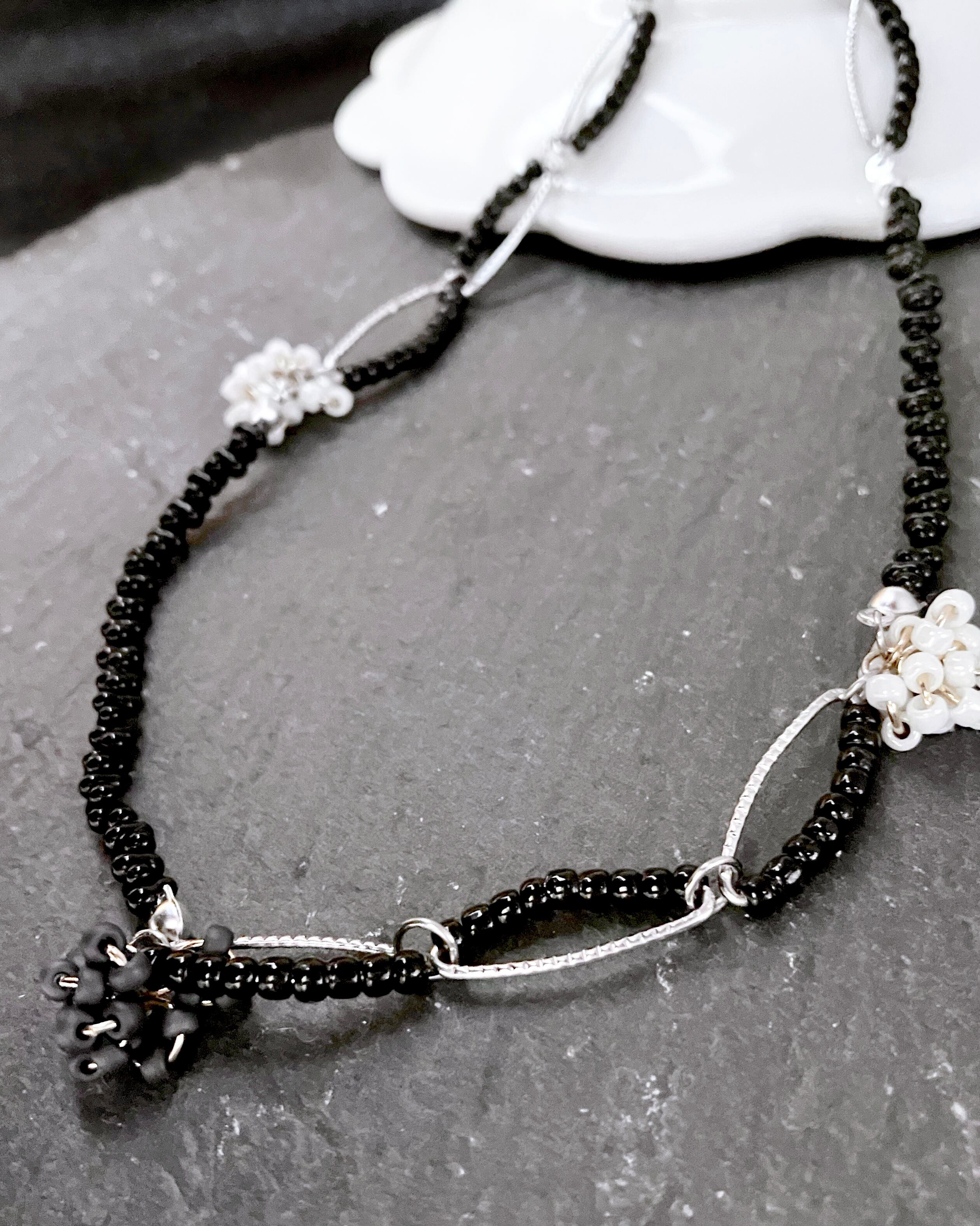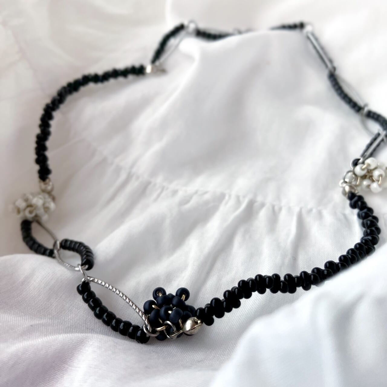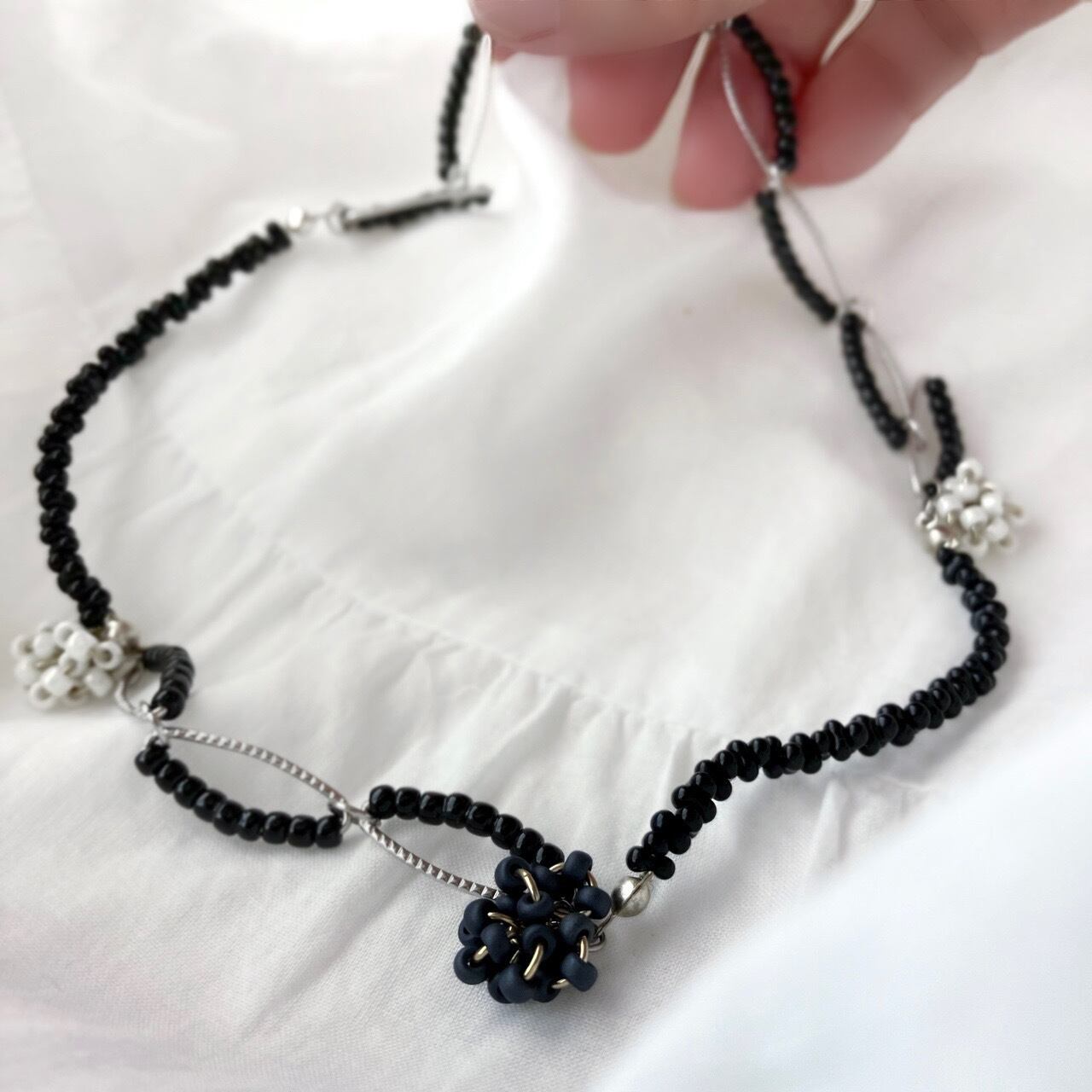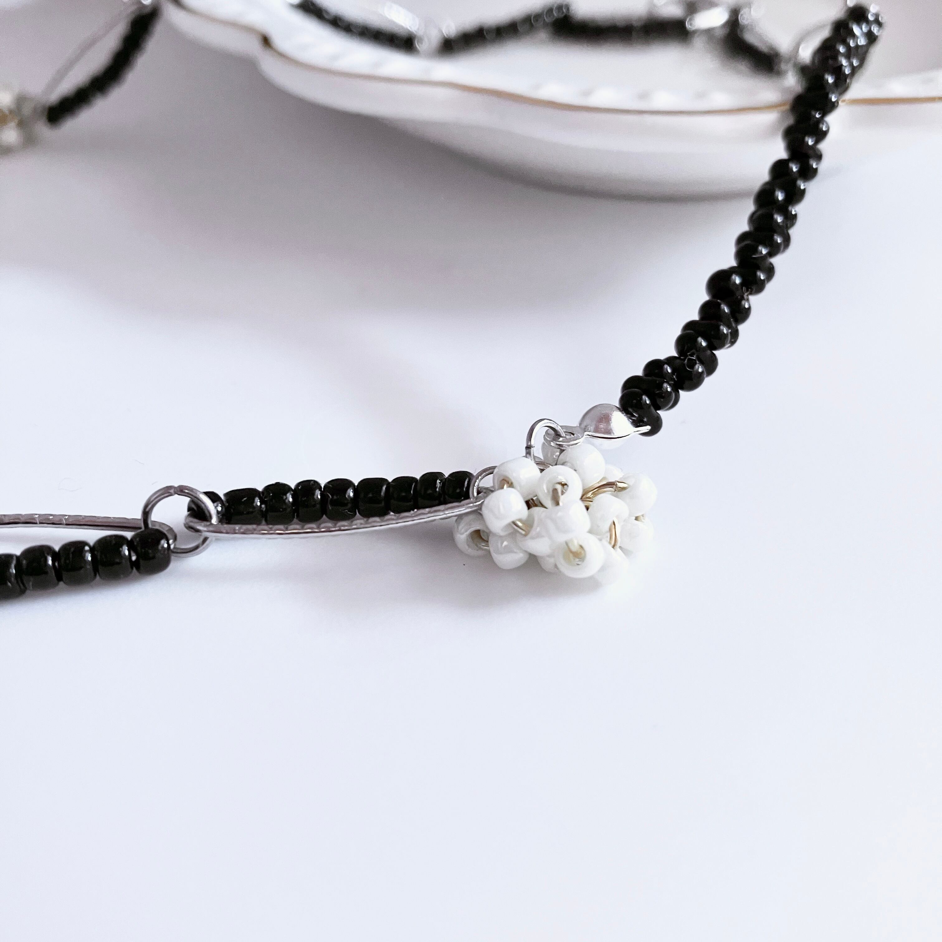 ・金具やビーズは 汗、皮脂、化粧品、経年変化等により変色します。ご使用後は柔らかい布等で優しくお手入れする事をおすすめします。