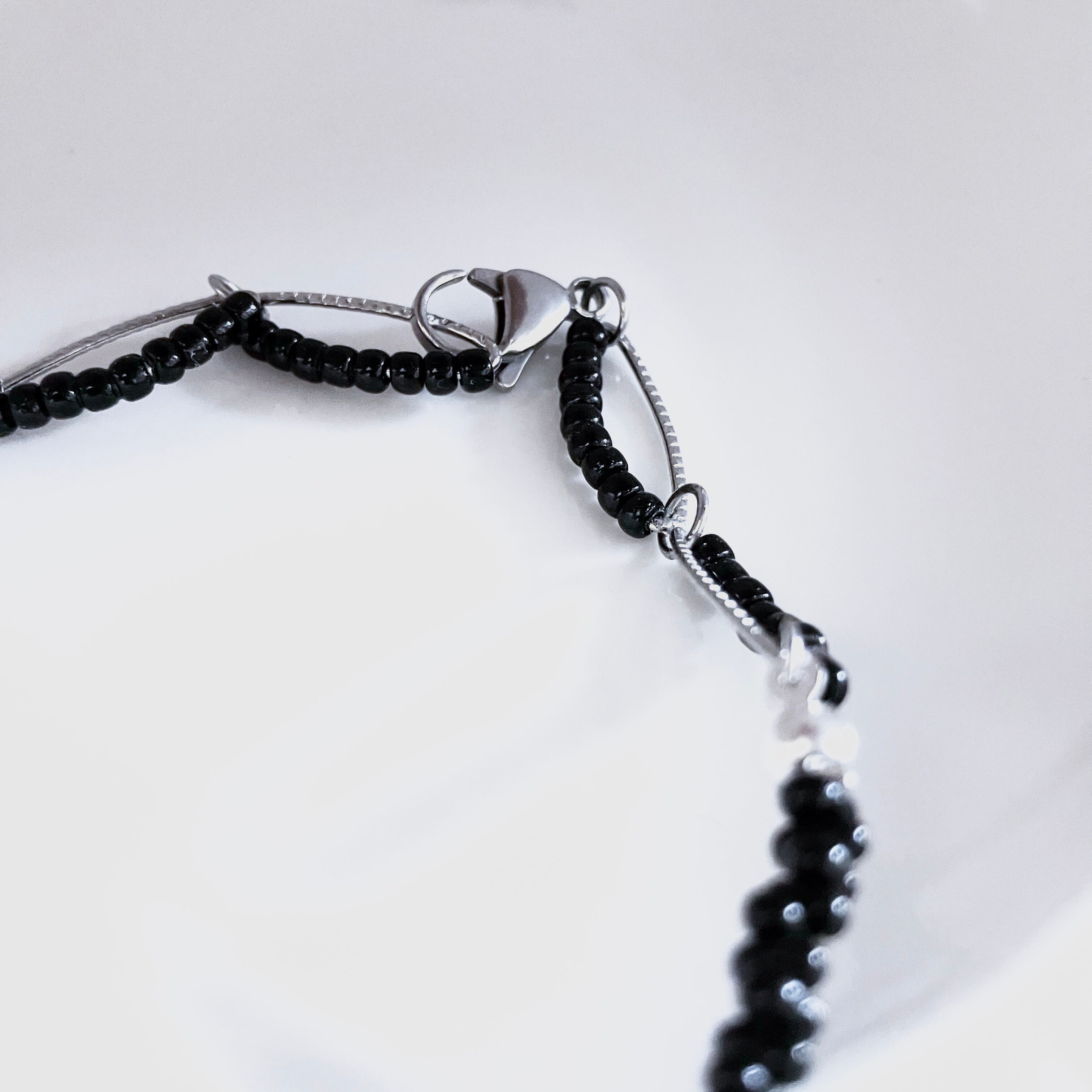 切れ目を接着剤とビーズで繋いだところ、思いの外かわいいパーツができました。
