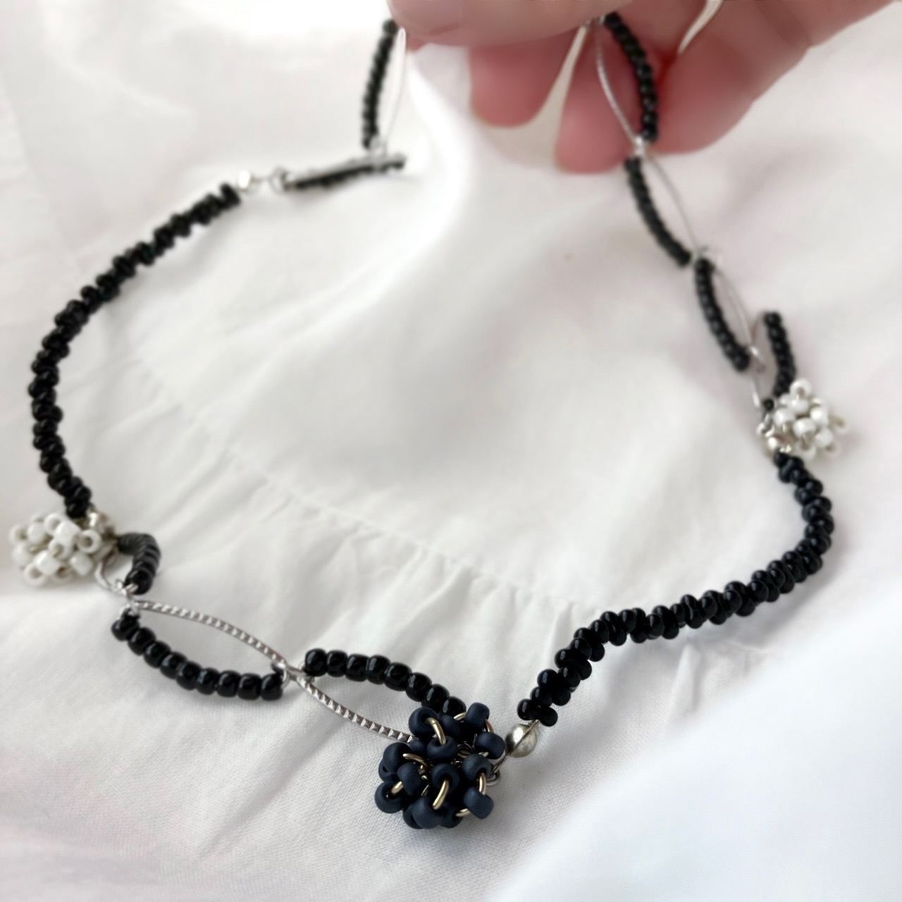 ブラックビーズを組み合わせたショートネックレス