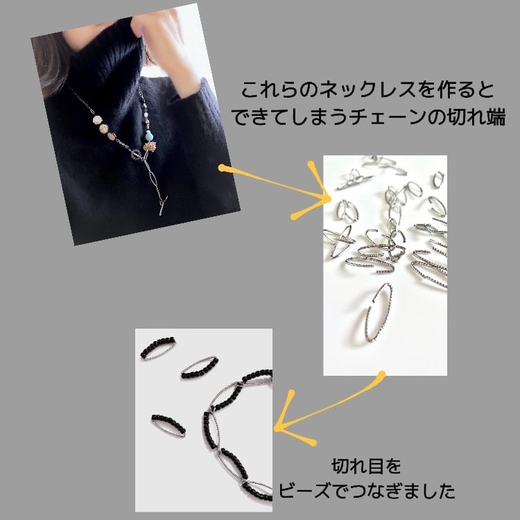 utane+の人気アイテムであるカラフルネックレスを制作する際にできてしまうチェーンの切れ端…
