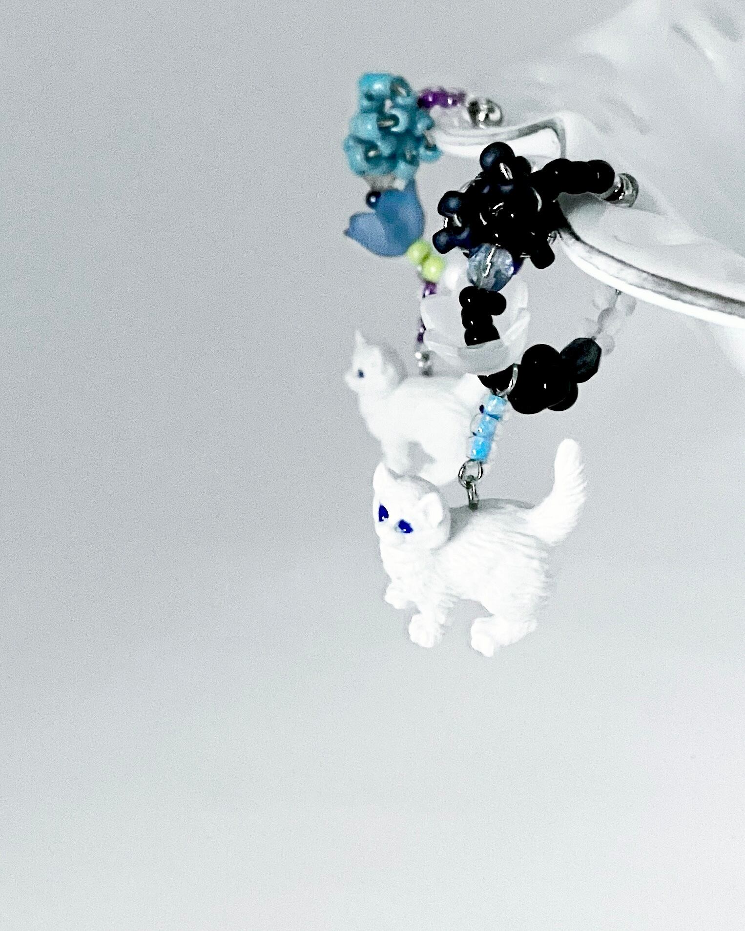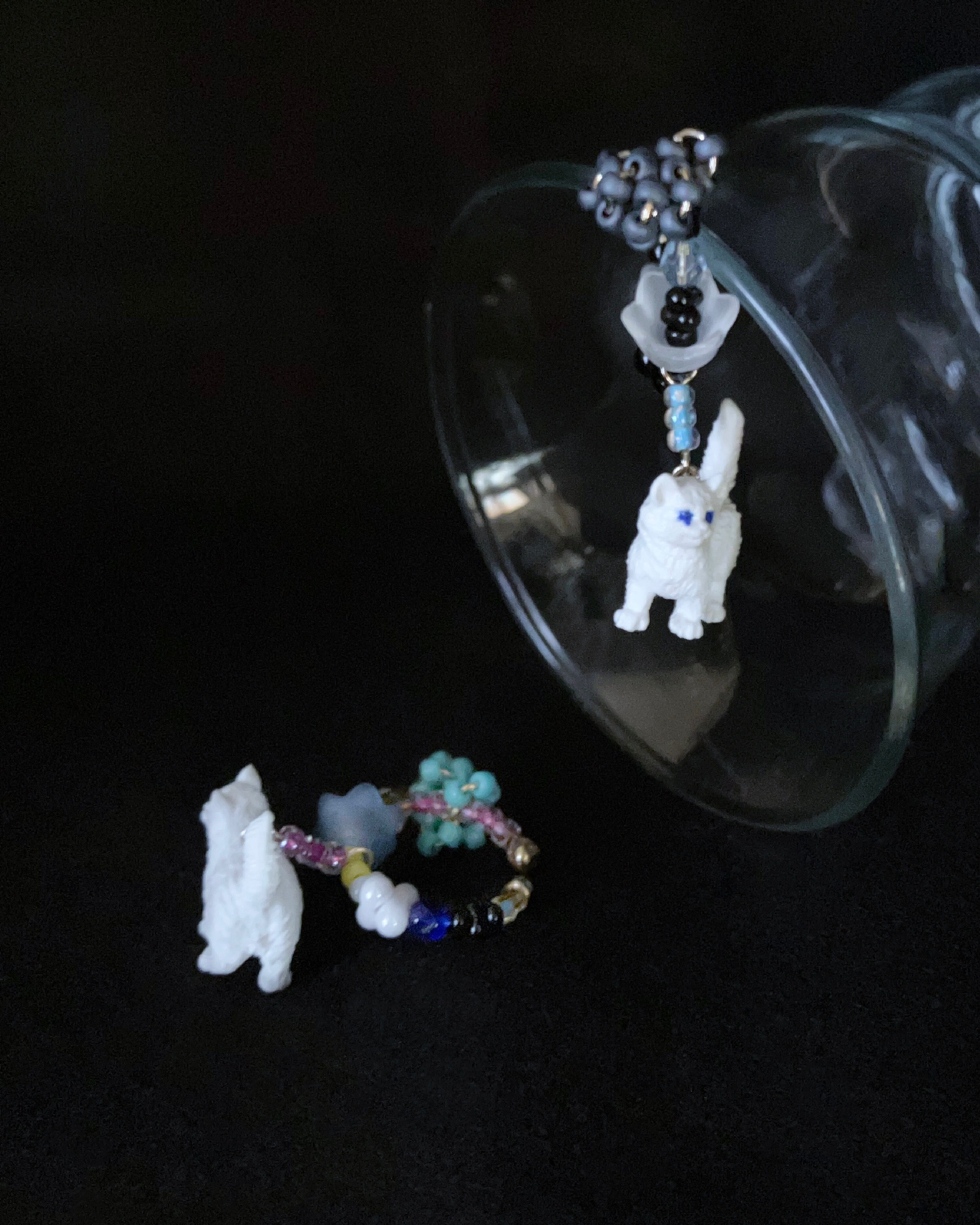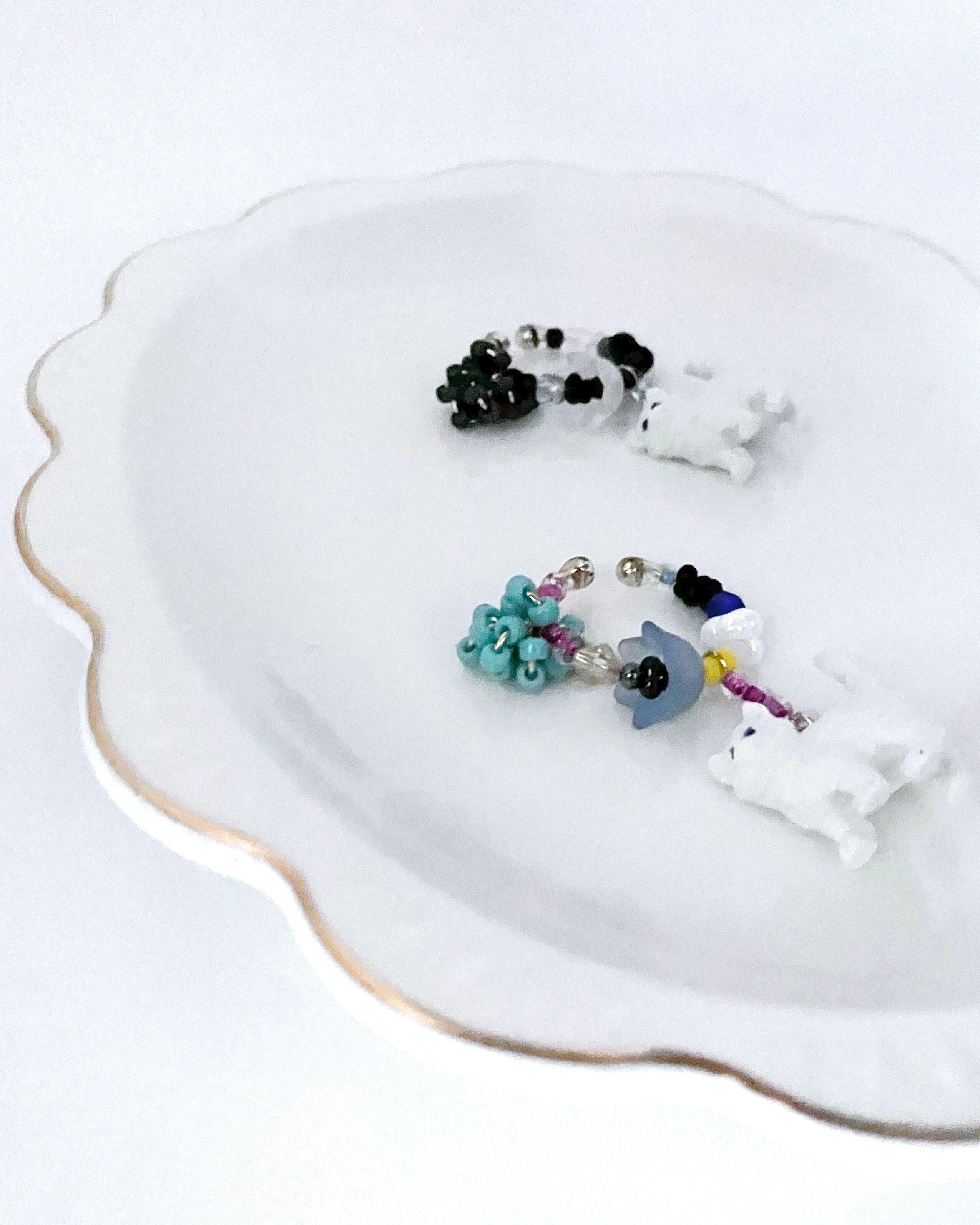 ・金具やビーズ、チャームは 汗、皮脂、化粧品、経年変化等により変色します。ご使用後は柔らかい布等で優しくお手入れする事をおすすめします。