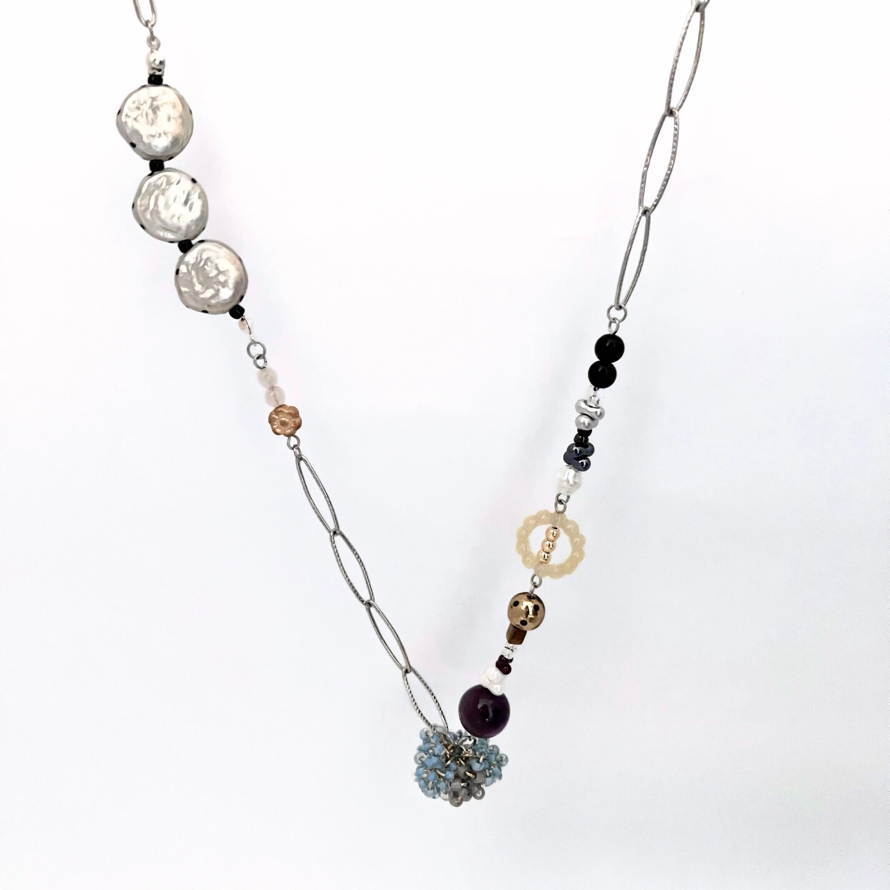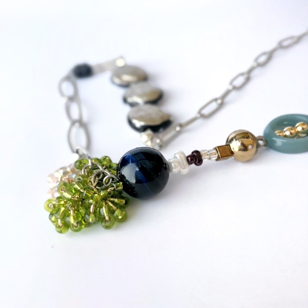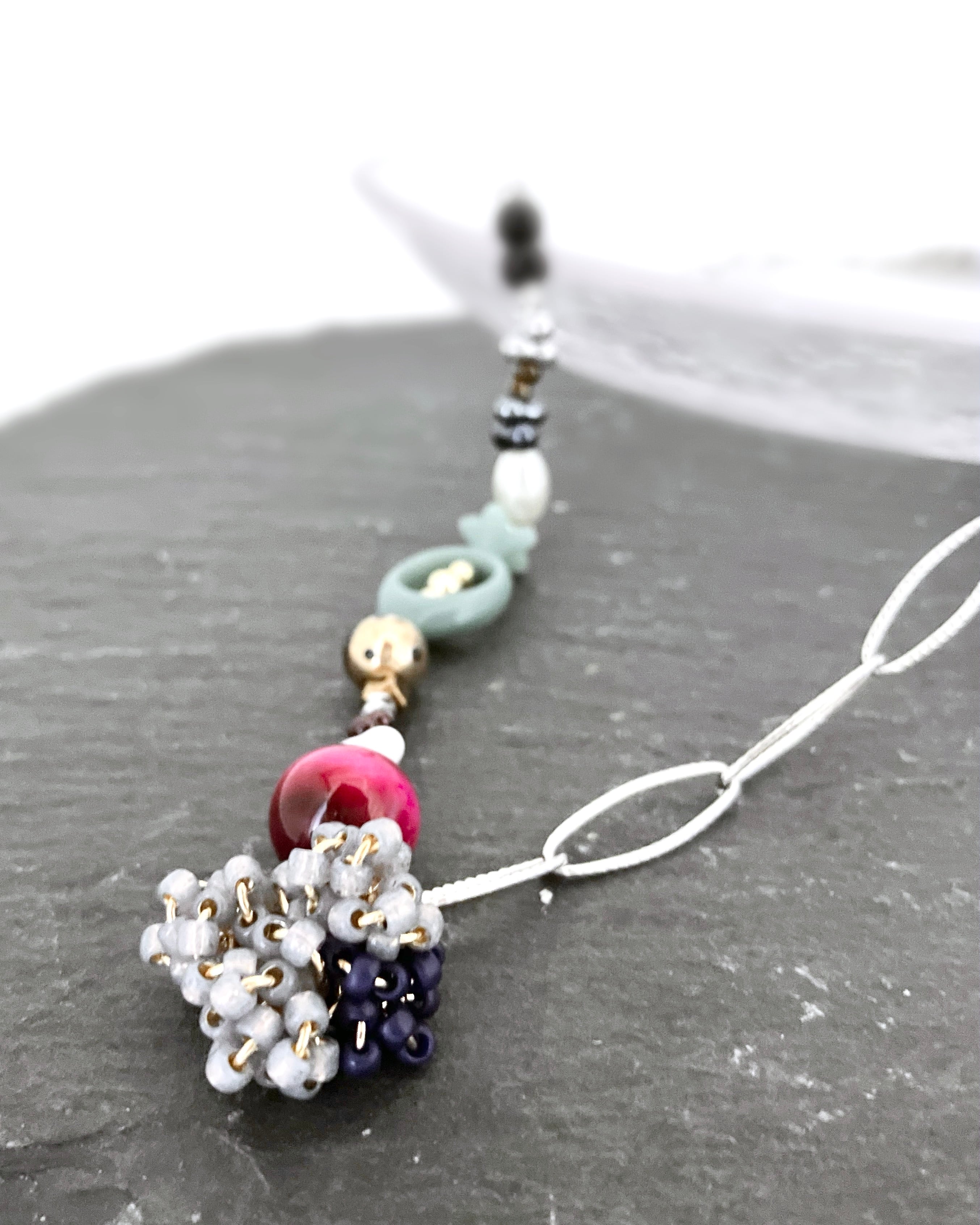 華やか ビーズ あずきチェーン チェーンネックレス