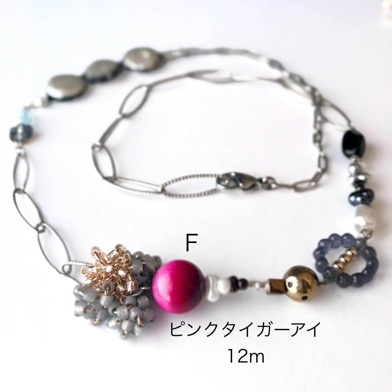 F 62cm(ピンクタイガーアイ12mm)