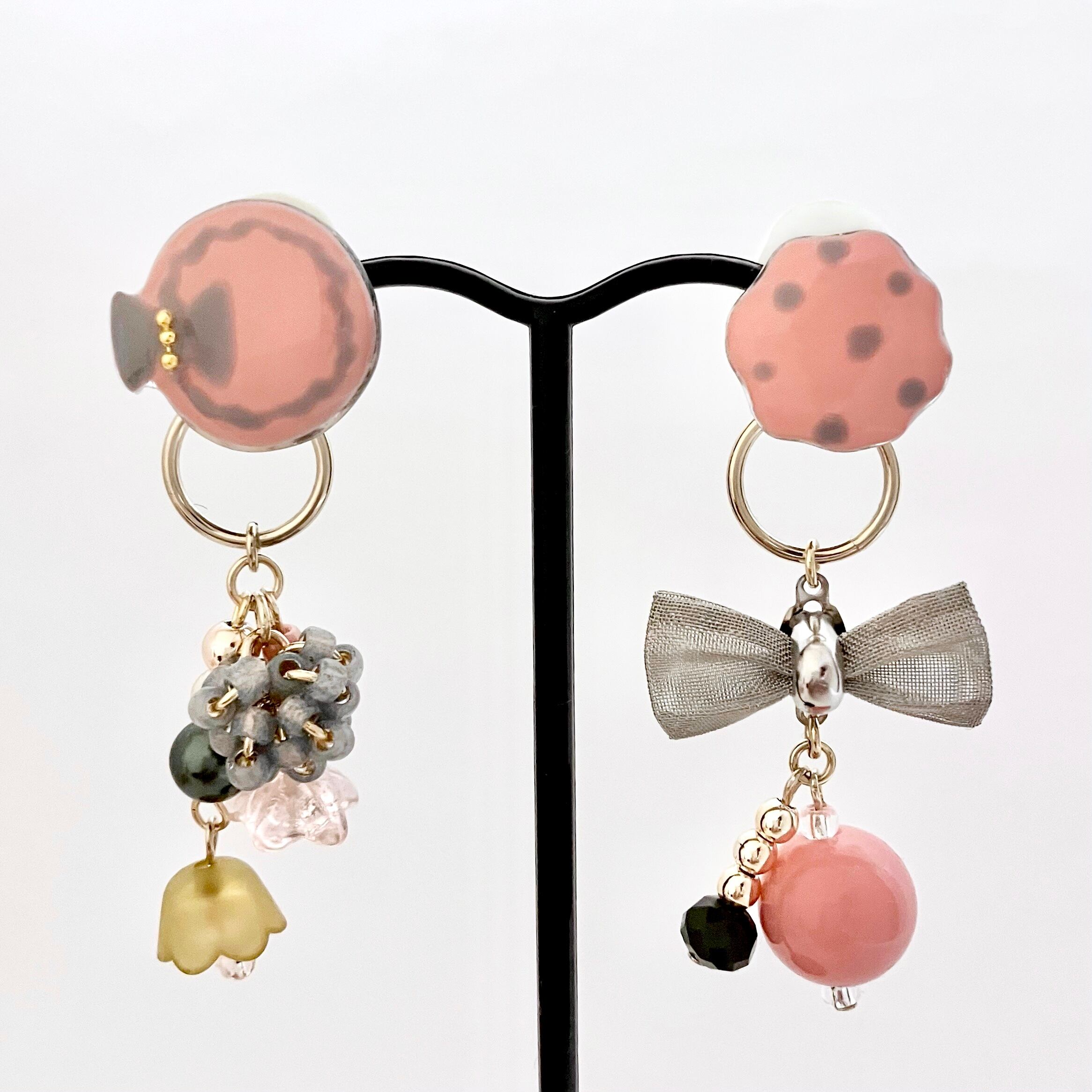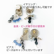 イヤリングのビーズは取り外し可能、ピアスではキャッチに付いているので、ベースのみでもお楽しみいただけます。