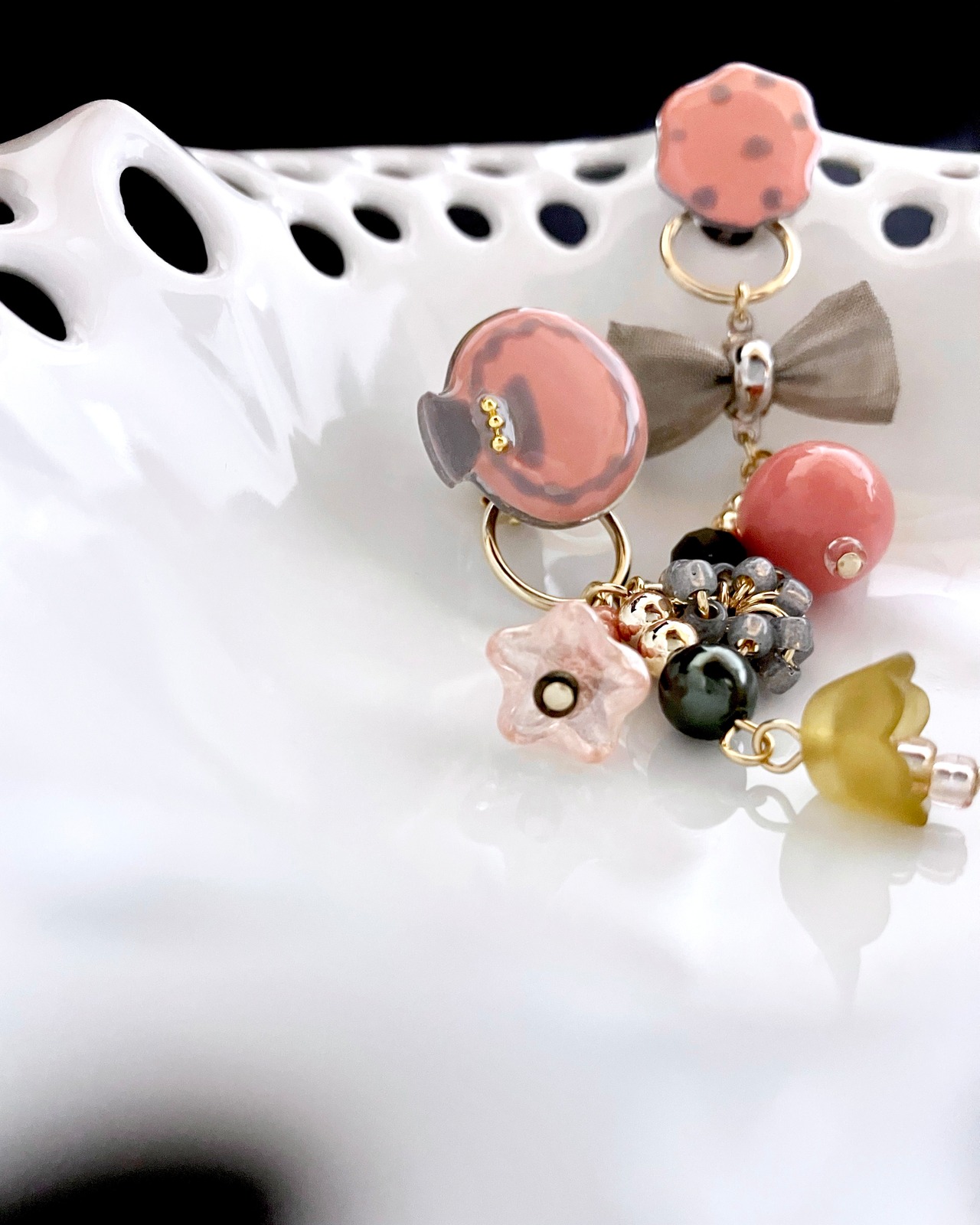 揺れるビーズもリボンのチャームをメインに組み合わせました。