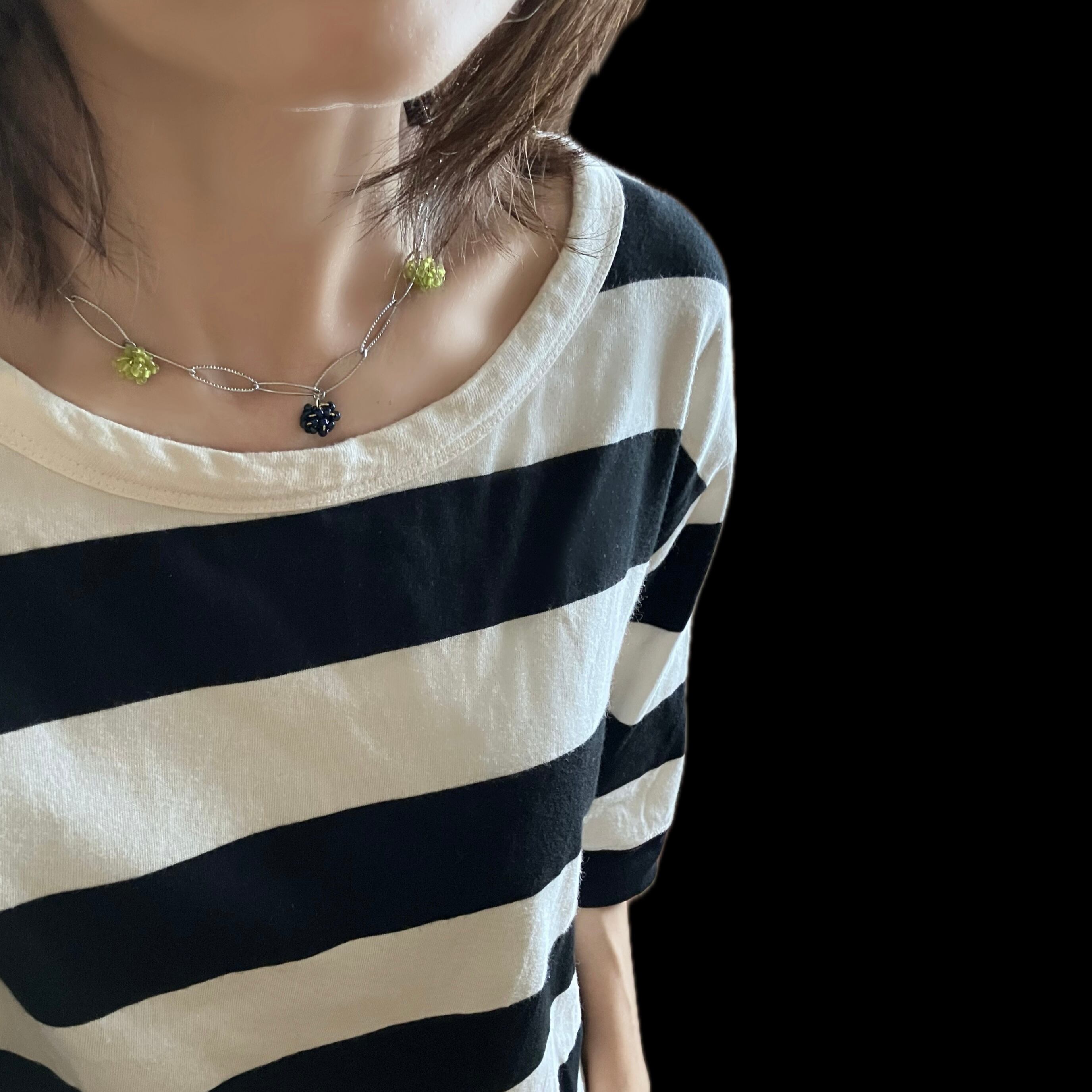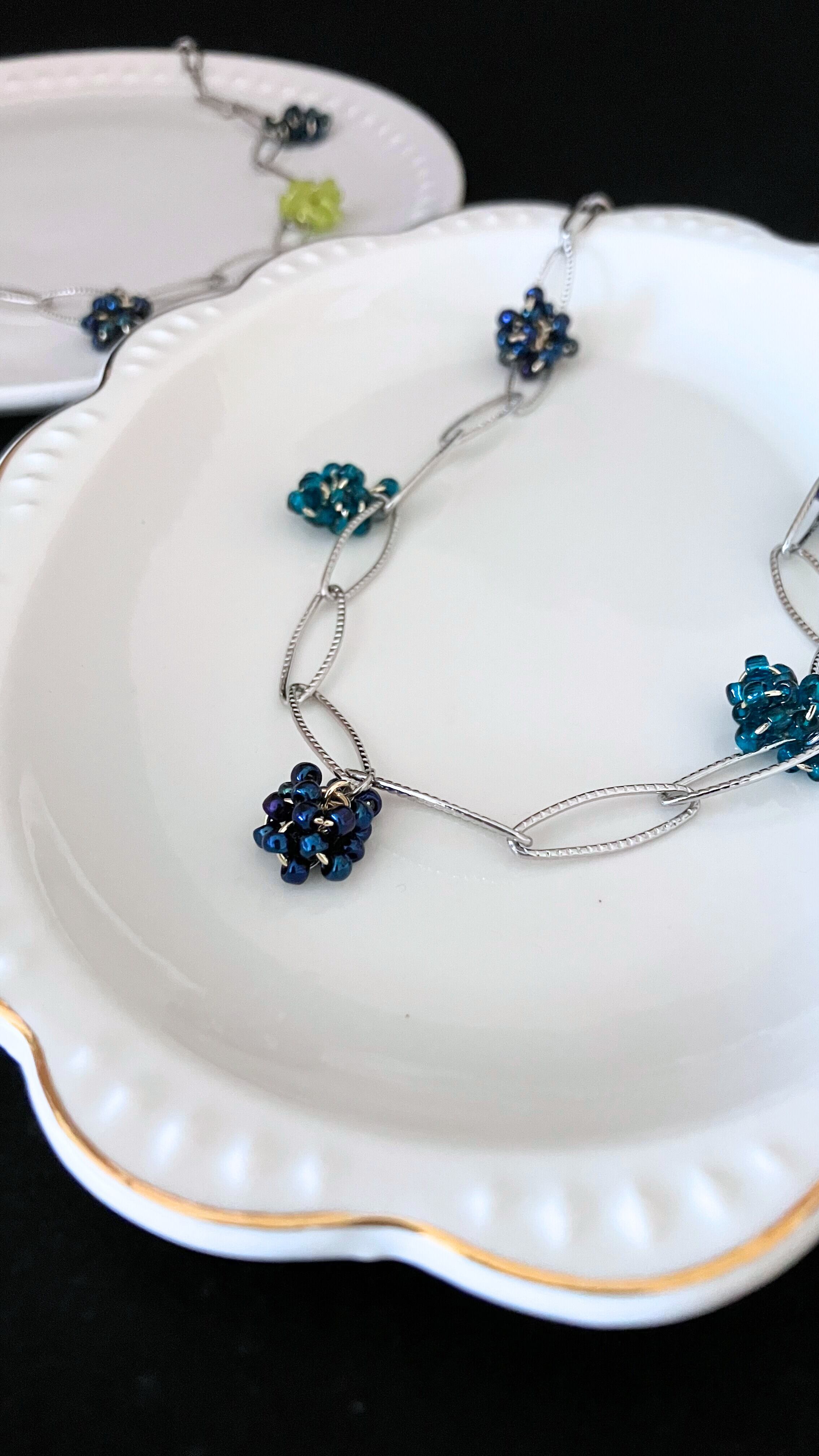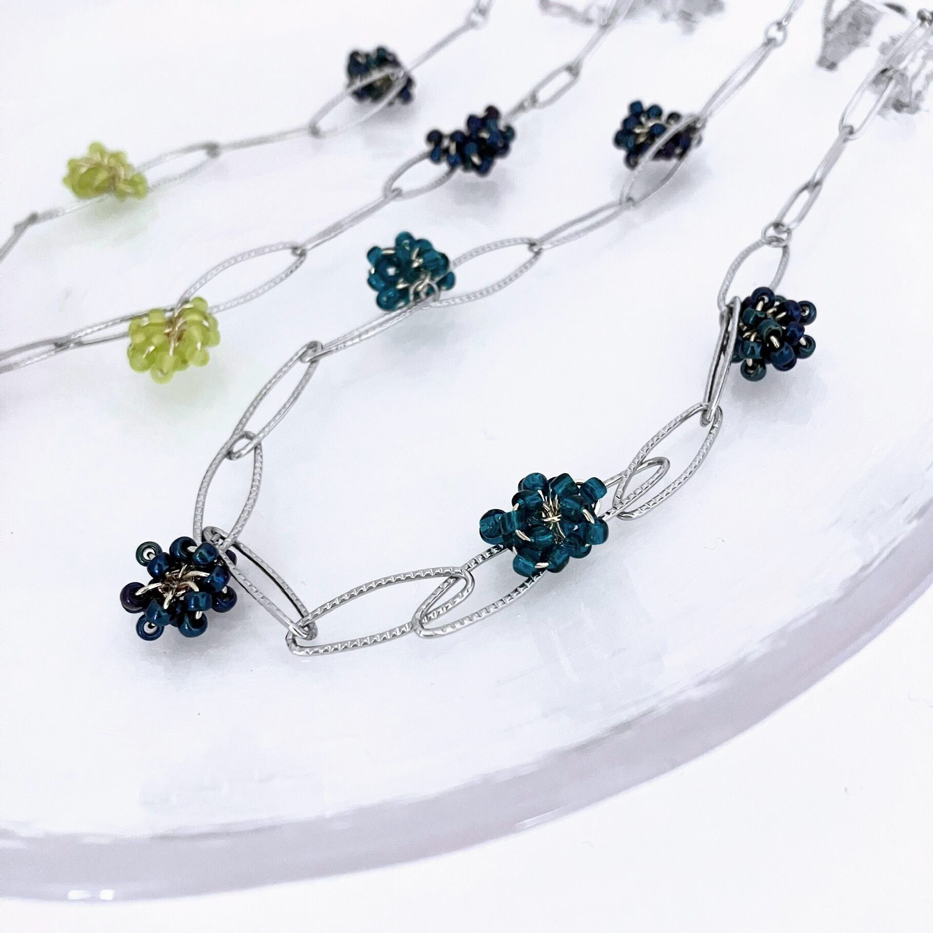 さらにつぶつぶビーズのみを散らした大人キュートなネックレスです。