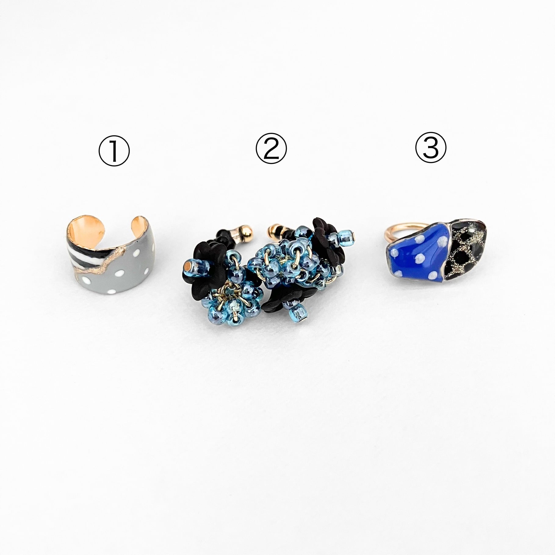 ③ブラック×ラピスブルーのミニイヤーカフ。