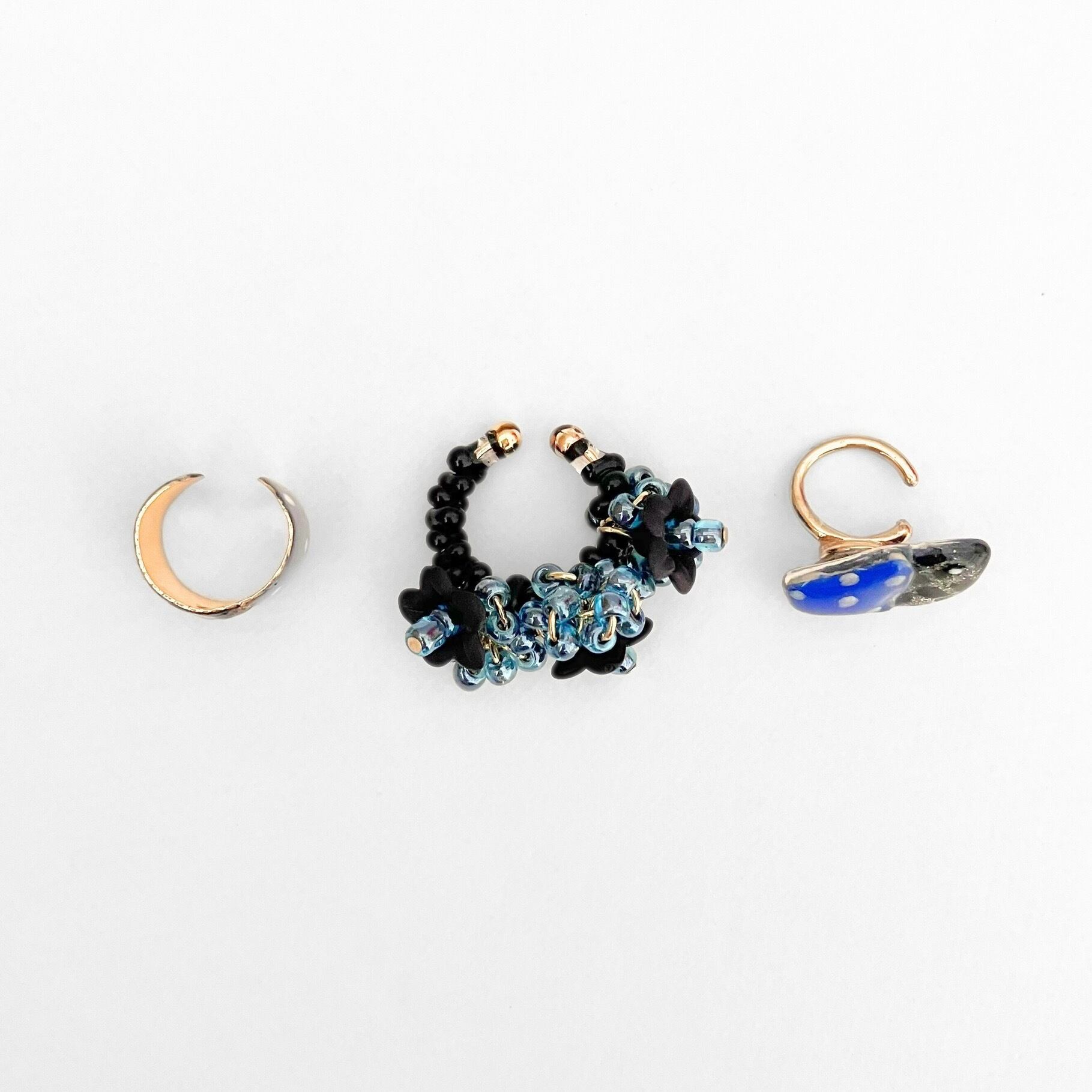 つぶつぶビーズのイヤーカフは他の2点との重ね付けもおすすめです。