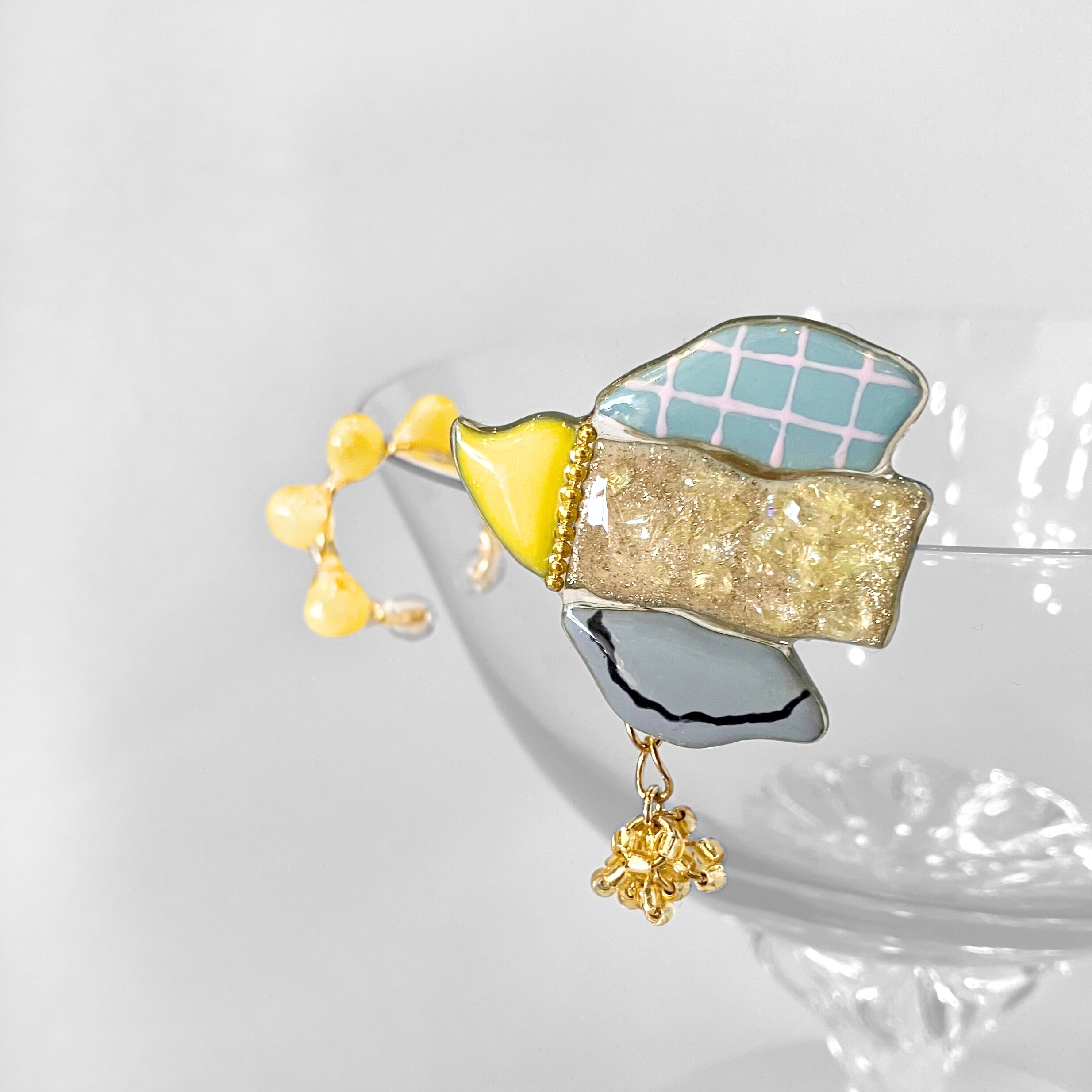 イヤーカフ:アーティスティックワイヤー、ガラス粒、レジン等