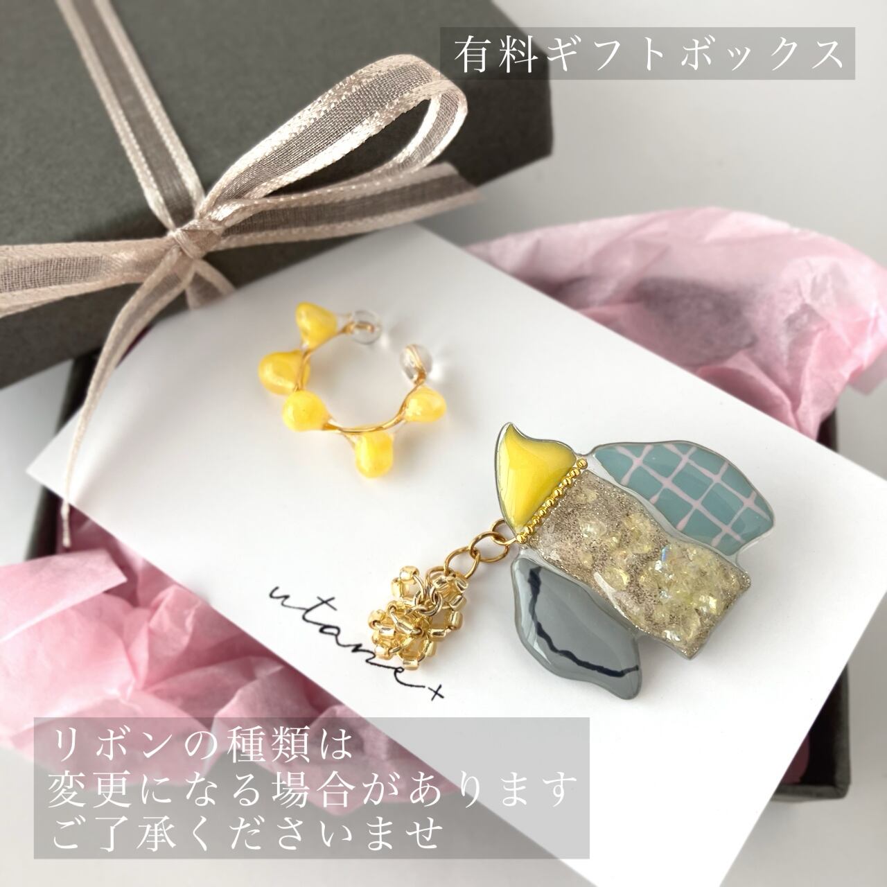 こぼれ落ちそうなミモザをイメージしたつぶつぶビーズは取り外しが可能です。
