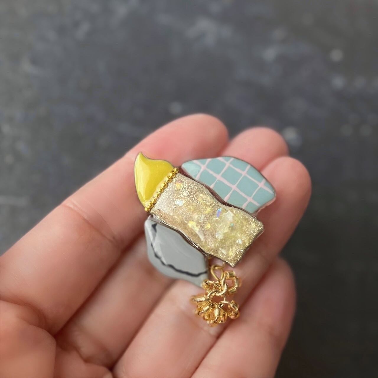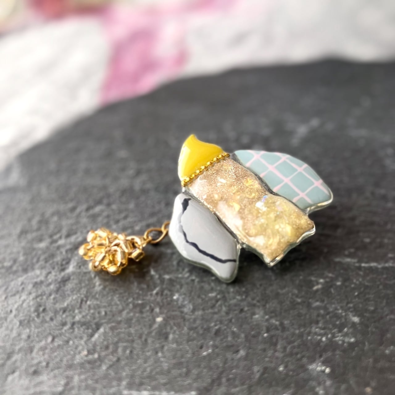 プラバン、真鍮ピン、レジン、ステンレスチェーン、ビーズ等
