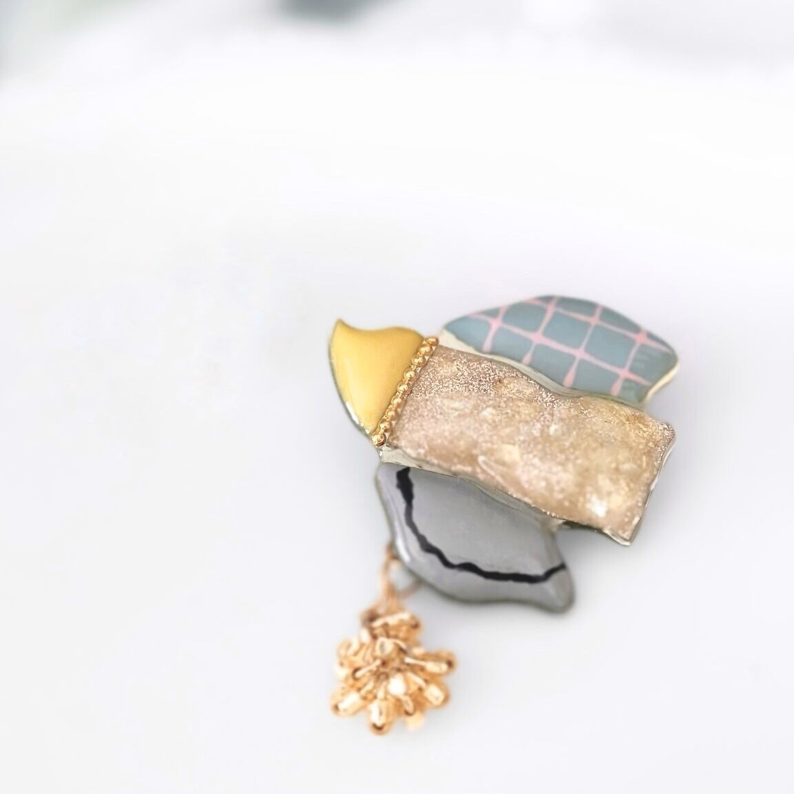 ミモザの鳥ブローチとイヤーカフ〜春お届け便