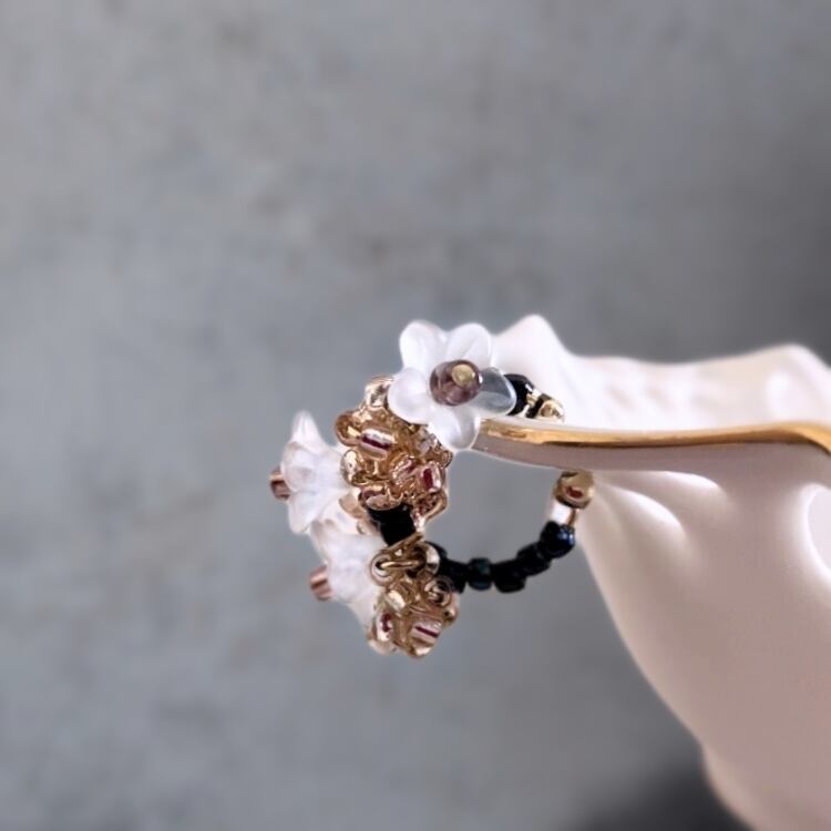 ・金具やビーズは 汗、皮脂、化粧品、経年変化等により変色します。ご使用後は柔らかい布等で優しくお手入れする事をおすすめします。